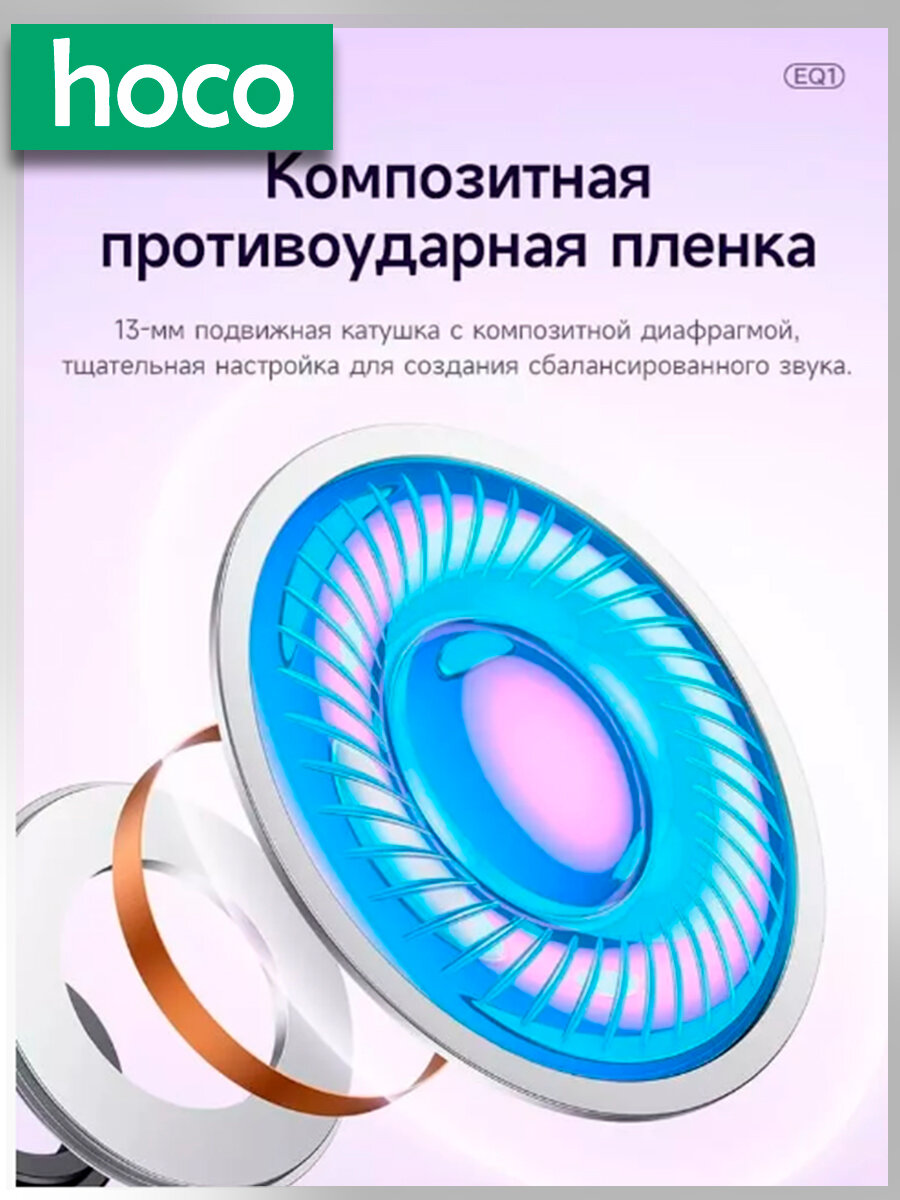 СохранитьБеспроводные Bluetooth наушники с микрофоном, hoco EQ1,(фиолетовый) интересное:
