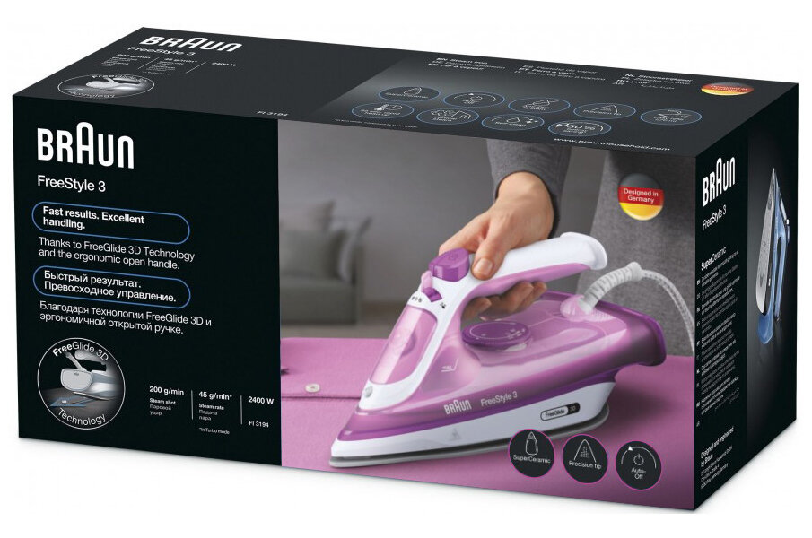Утюг BRAUN FreeStyle3 12730020-FI3124PU (Цвет: Фиолетовый; Подошва: FreeGlide 3D)