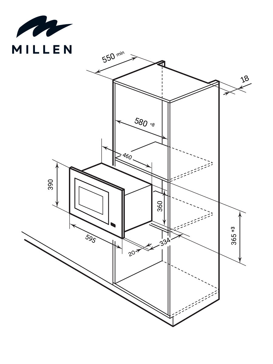 Микроволновая печь встраиваемая, MILLEN MBW 381 BL, черный