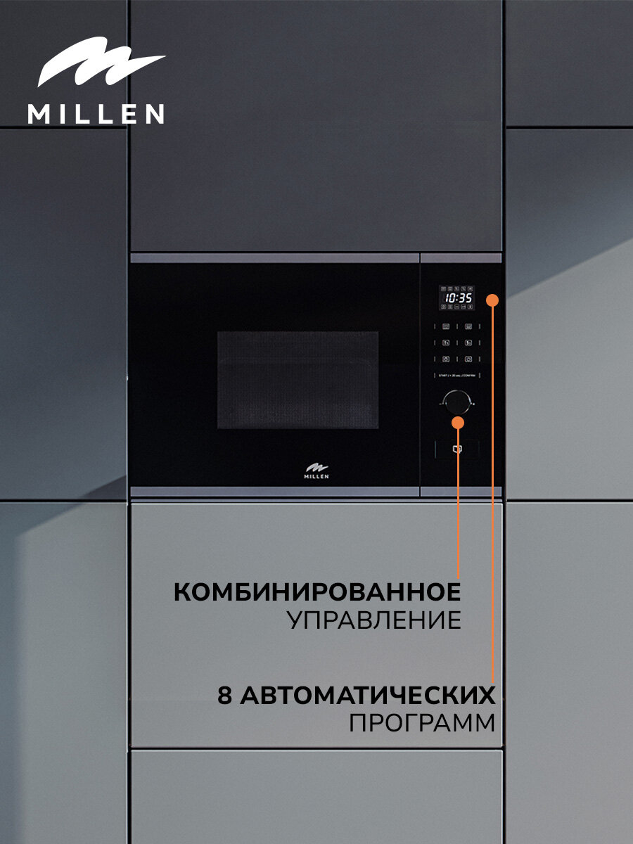 Микроволновая печь встраиваемая, MILLEN MBW 381 IX, черный-серый