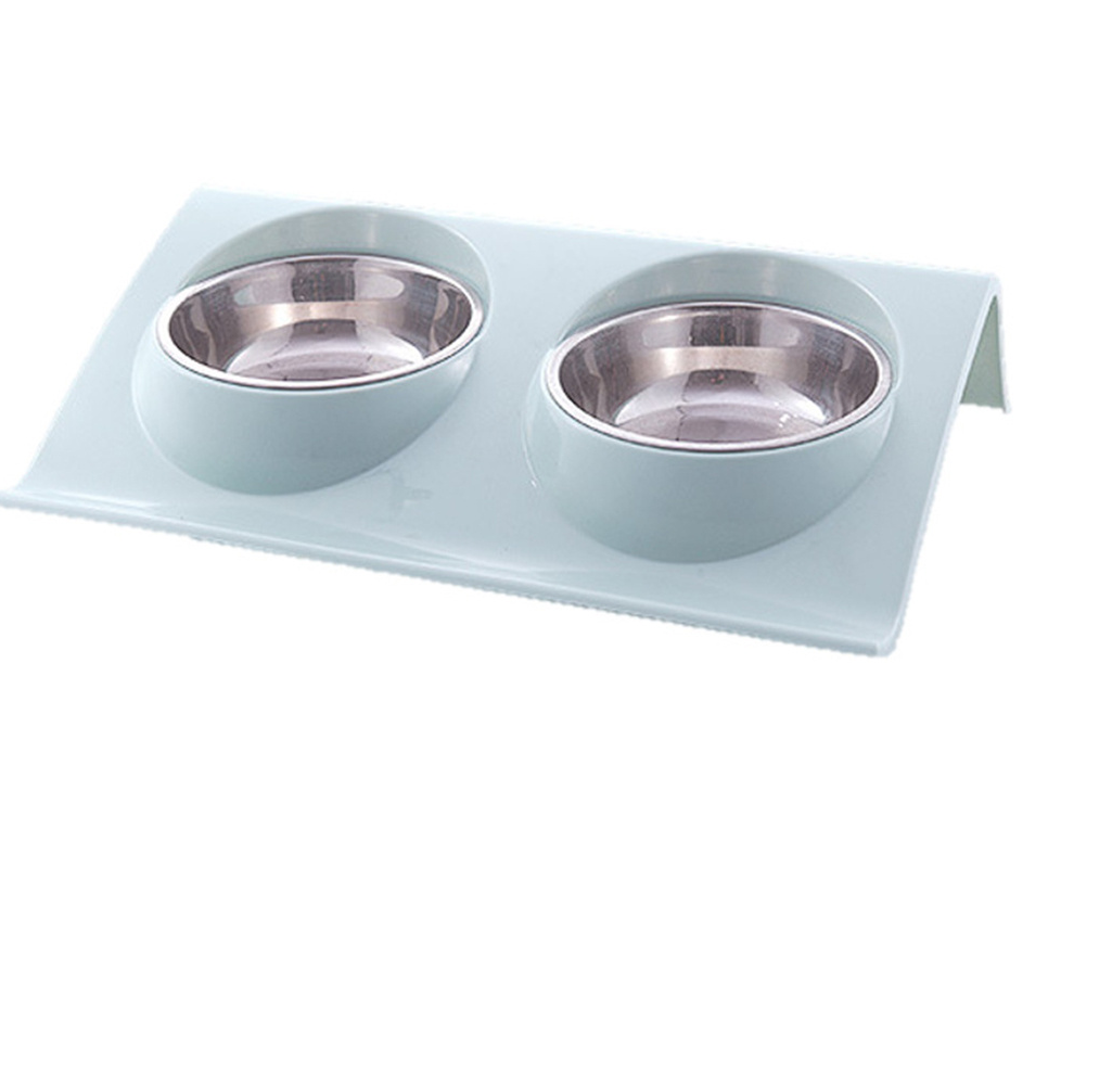 Двойная миска для животных собак и кошек на подставке (Голубой, 29х18,5х6,2 см.)
