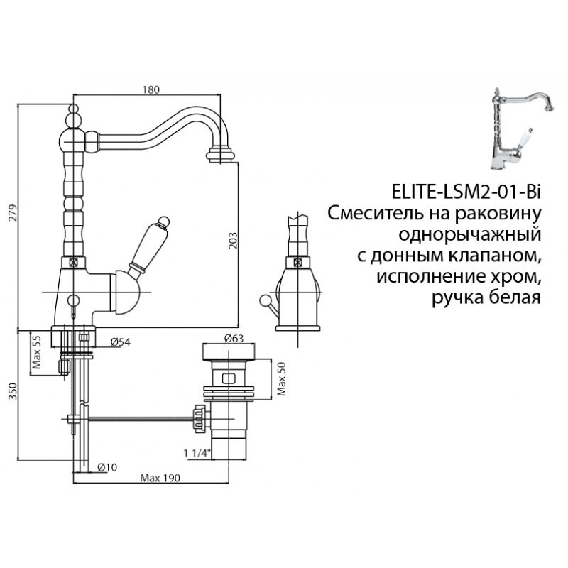 | Длина излива | 180 мм |