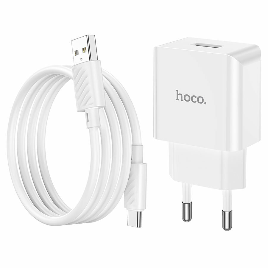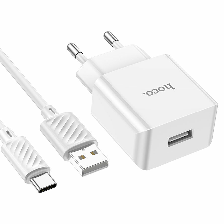 Купить Сетевое зарядное устройство HOCO C106A 1xUSB с Кабелем USB - Type-C, 2.1A, 10.5W, белый
