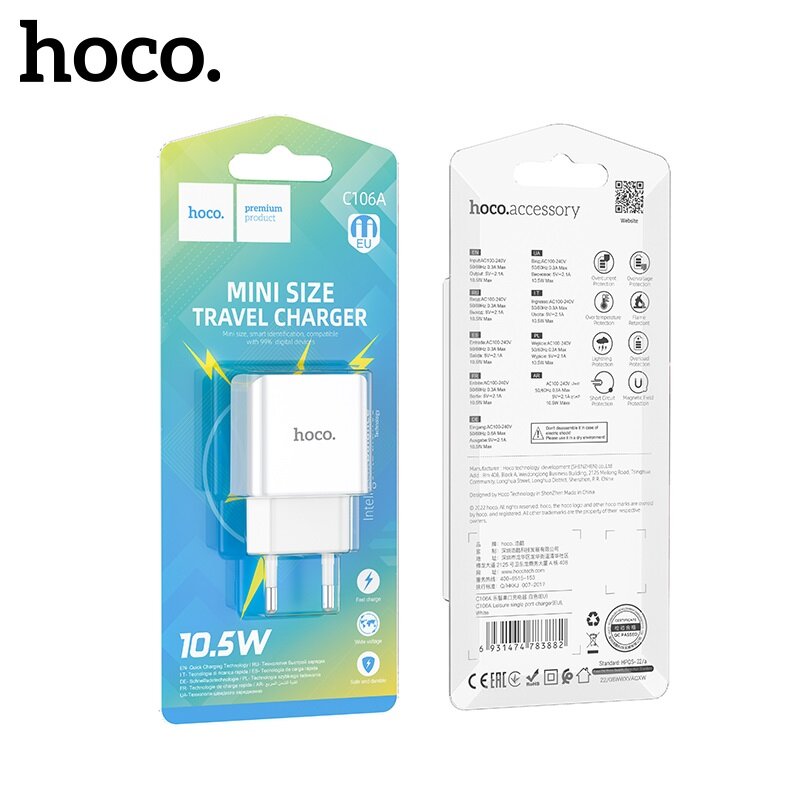 Сетевое зарядное устройство HOCO C106A 1xUSB с Кабелем USB - Type-C, 2.1A, 10.5W, белый интересное: