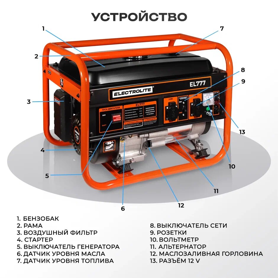 СохранитьГенератор бензиновый / Бензогенератор / Портативная электростанция / Бензиновый генератор Electrolite 777 EL ( 4.875 кВа максимальная нагрузка , 220 В, 3 / 3.5 кВт, 7 л.с, ручной стартер ) интересное: