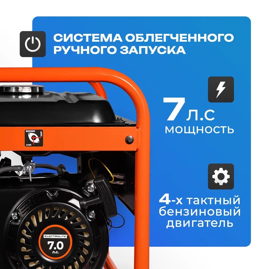 Бензиновый генератор Electrolite 777 EL ( 4.875 кВа максимальная нагрузка , 220 В, 3 / 3.5 кВт, 7 л.с, ручной стартер )