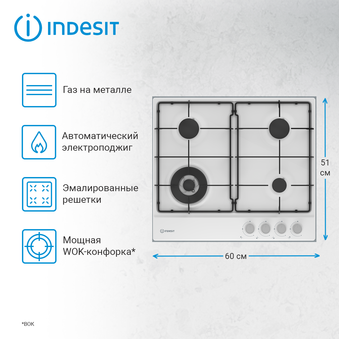 Встраиваемая газовая панель независимая Indesit THPM 641 W/WH/I