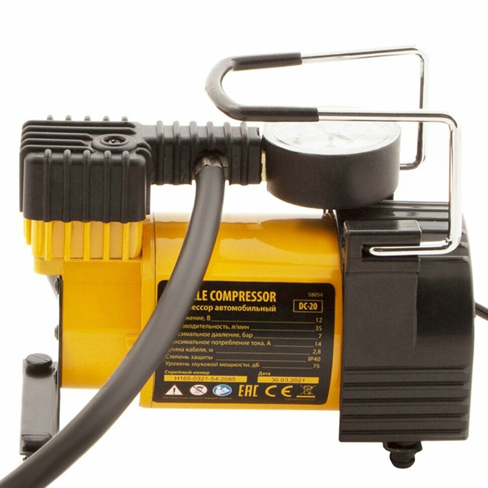 Компрессор автомобильный Denzel DС-20, 12 В, 7 атм., 35 л/мин интересное: