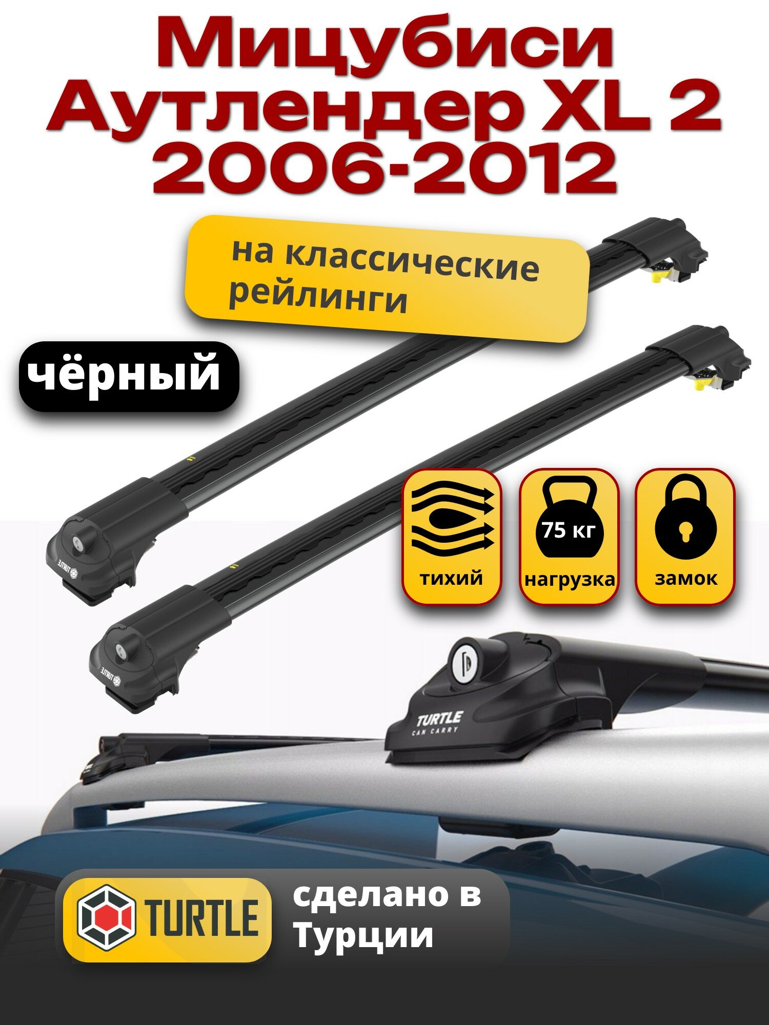 Багажник на крышу Мицубиси Аутлендер XL 2 2006-2012 на рейлинги, черный, Turtle Air-1 интересное: