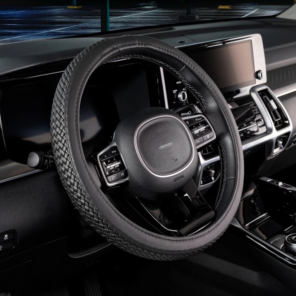 Купить SKYWAY Оплётка руля SKYWAY кожаная Черная с плетением ECO (М)