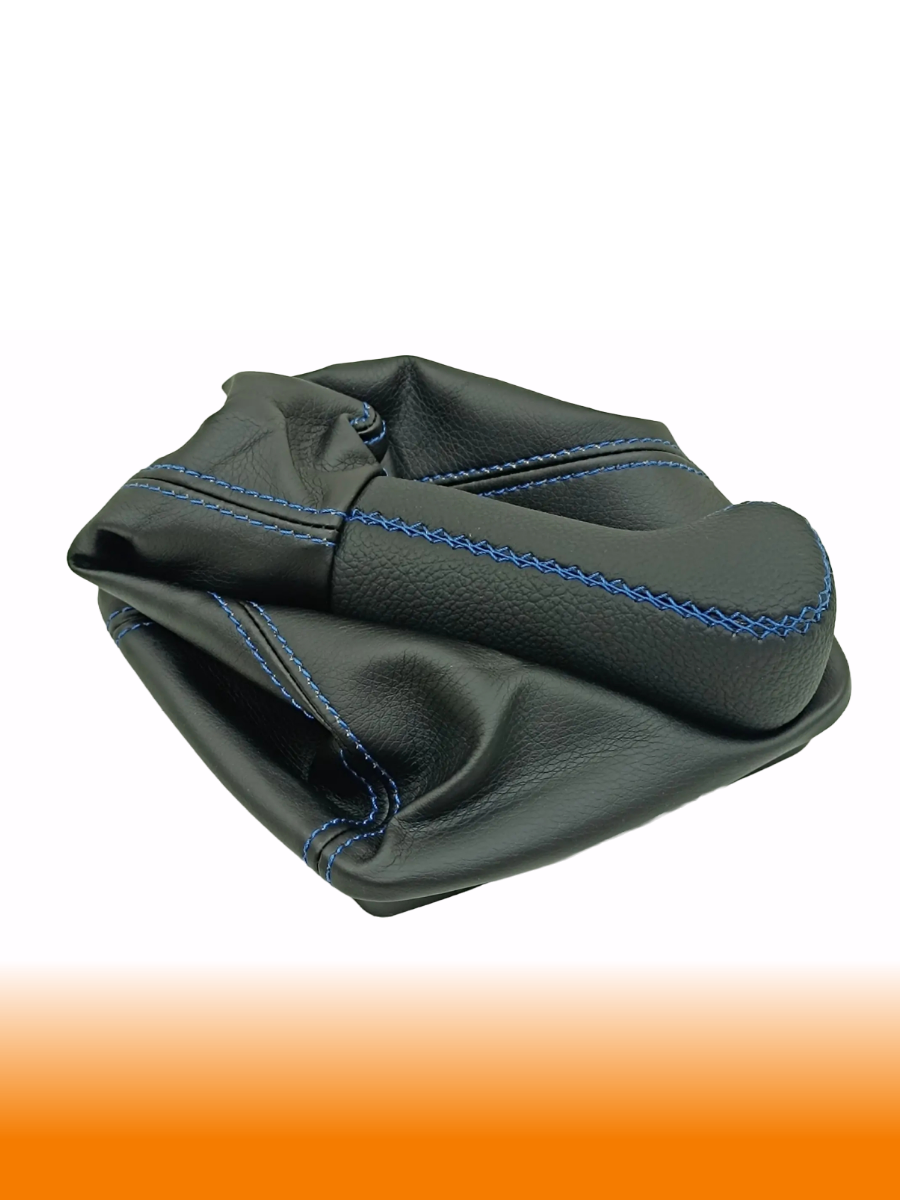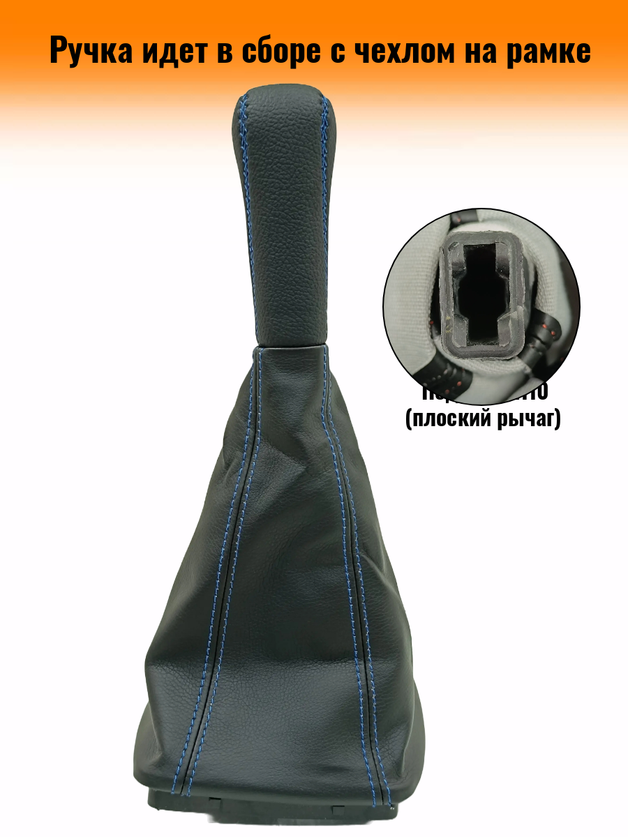 Ручка КПП на ВАЗ-2170, Лада Приора 1 (LADA Priora 1) c ВАЗ-2110 кулисой, ЛЮКС-черная вставка, черный с синей строчкой