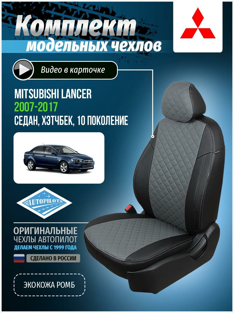 Чехлы для Mitsubishi Lancer 10 2007-2017 Автопилот Серый Экокожа с ромбом mi-ln-lns-chese-r интересное: