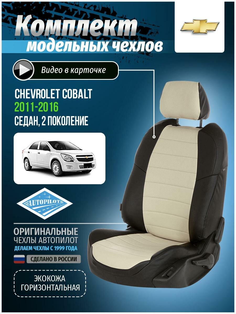 Чехлы на сиденья "АВТОПИЛОТ" из экокожи для Chevrolet Cobalt с 11г./Ravon R4 с 16г. Черный, Белый. she-ko-ko-chb-e