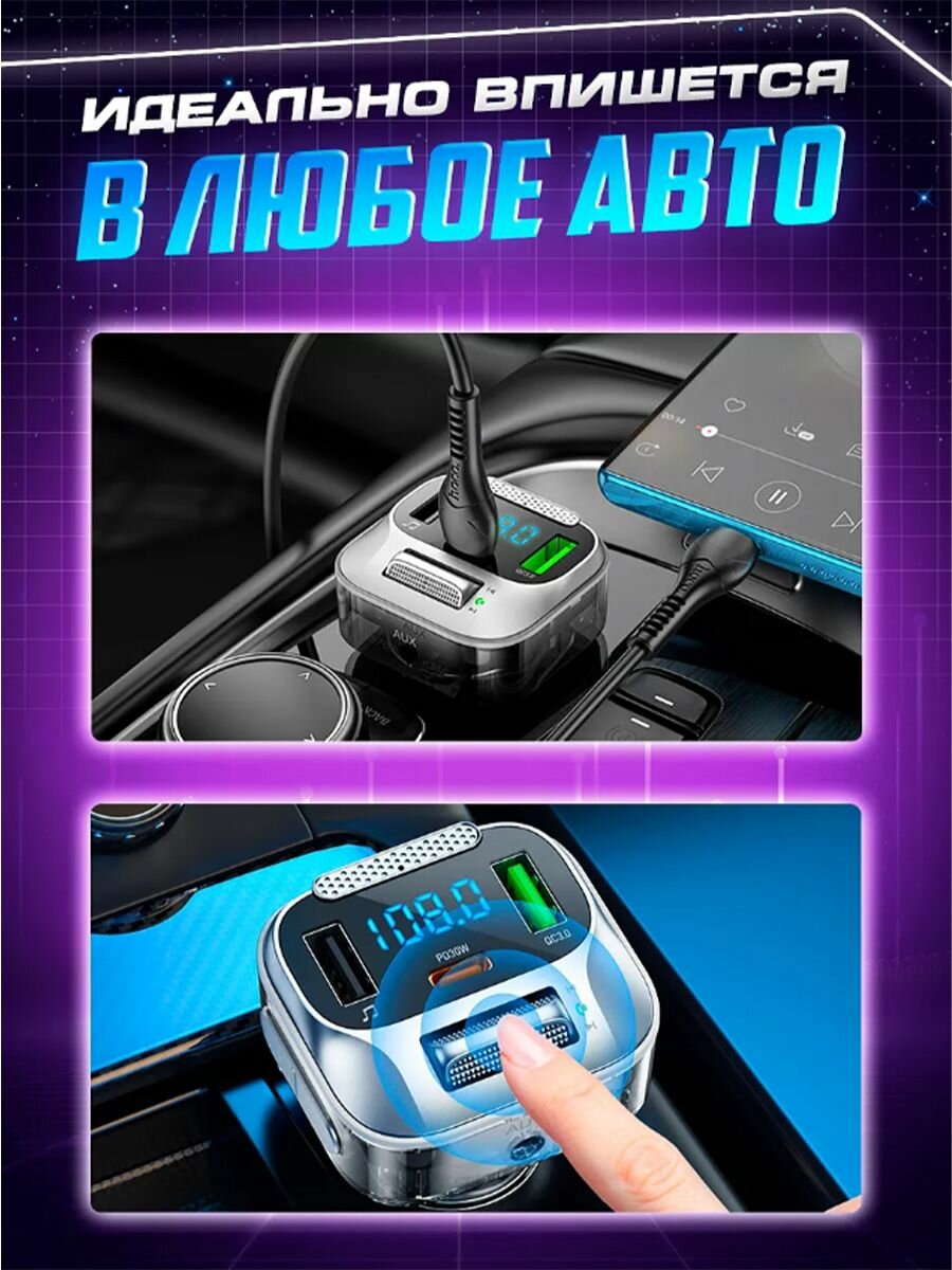 Орбита / TS-CAF120 FM-трансмиттер с bluetooth/микрофоном/ для автомобиля/ зарядник QC 3.0 для авто в прикуриватель