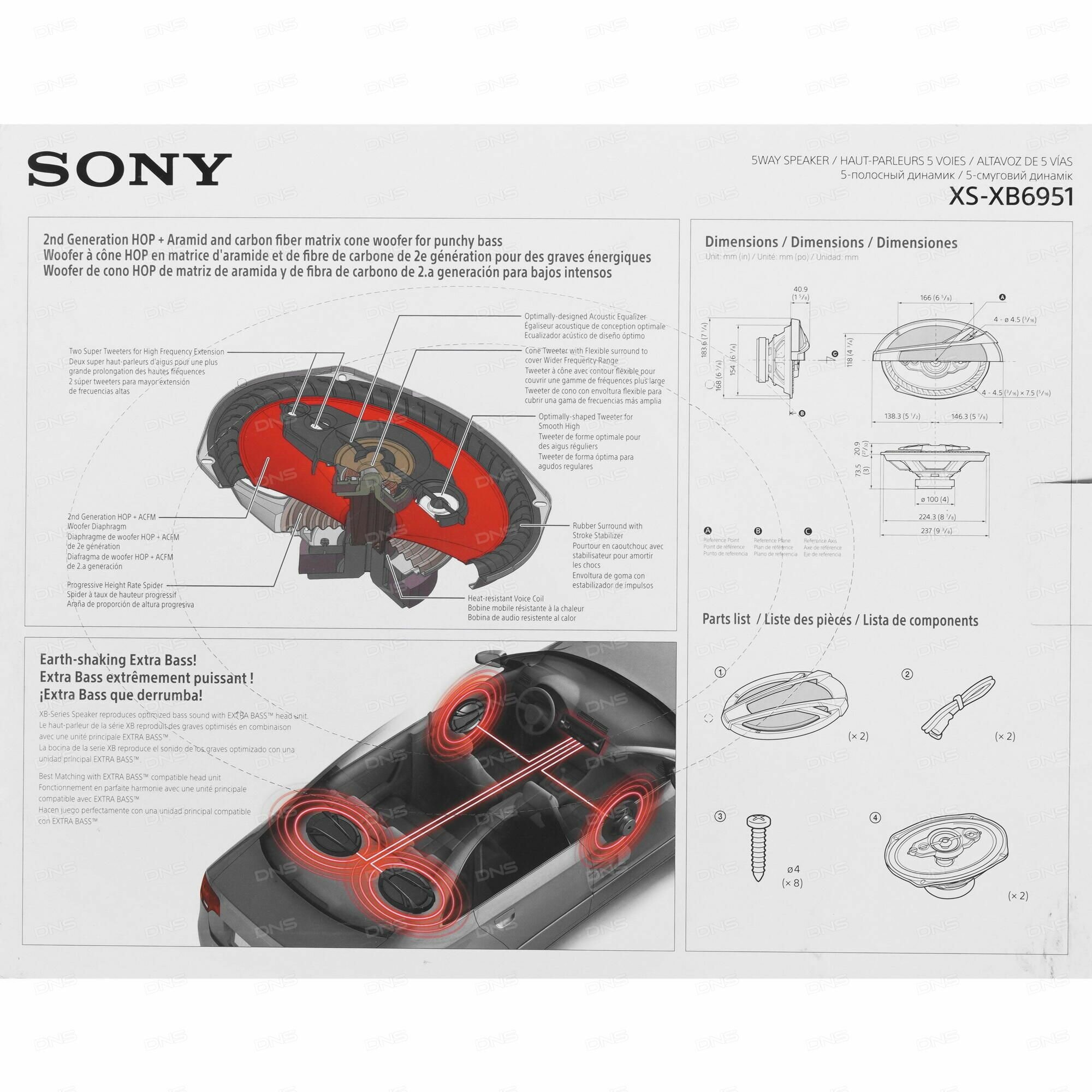 Ниже Вы можете прочитать отзывы на Sony XS-XB6951, ознакомится с подробными характеристиками, посмотреть интересные обзоры и фотографии на Sony XS-XB6951.