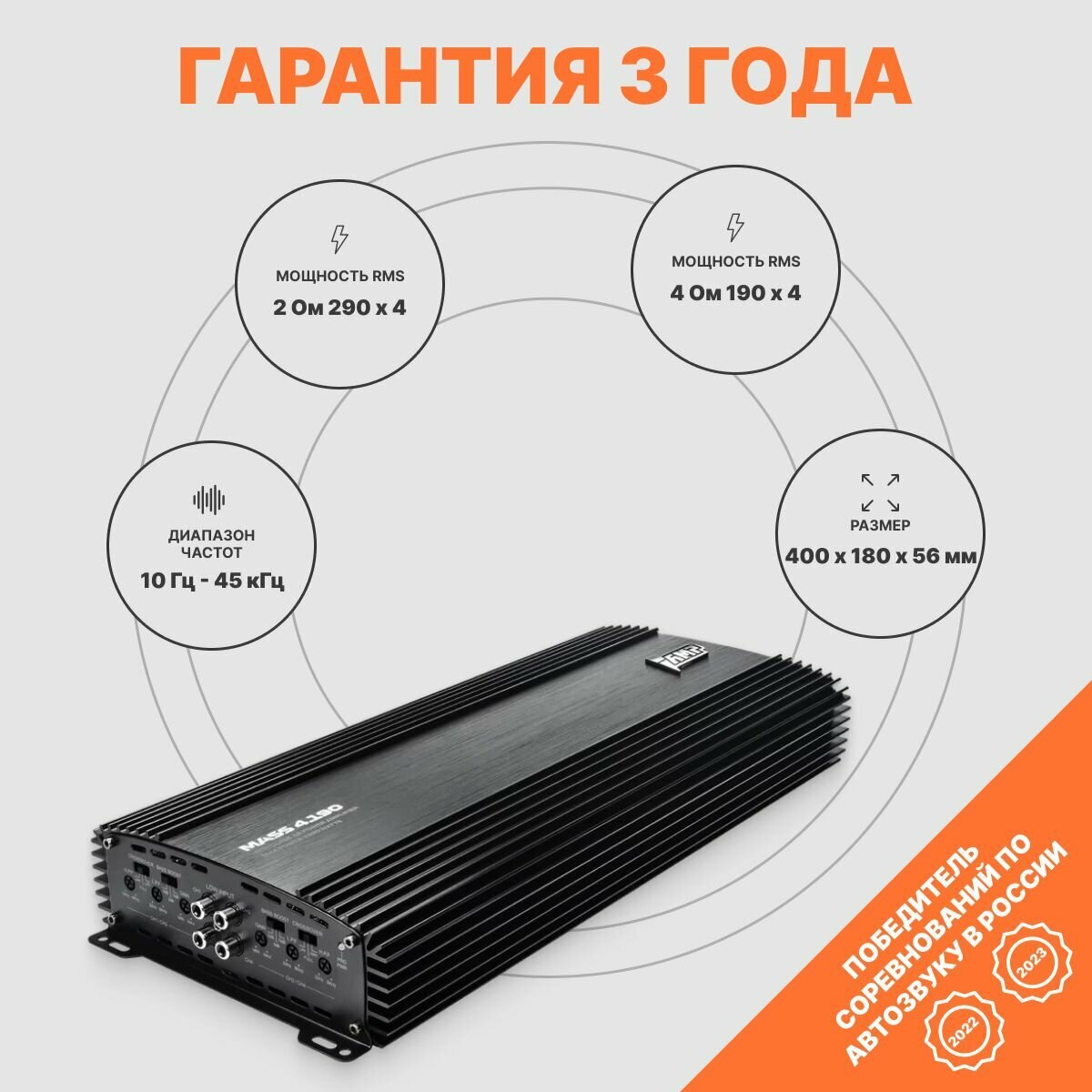 Автомобильный усилитель 4 канала AMP MASS 4.190 интересное: