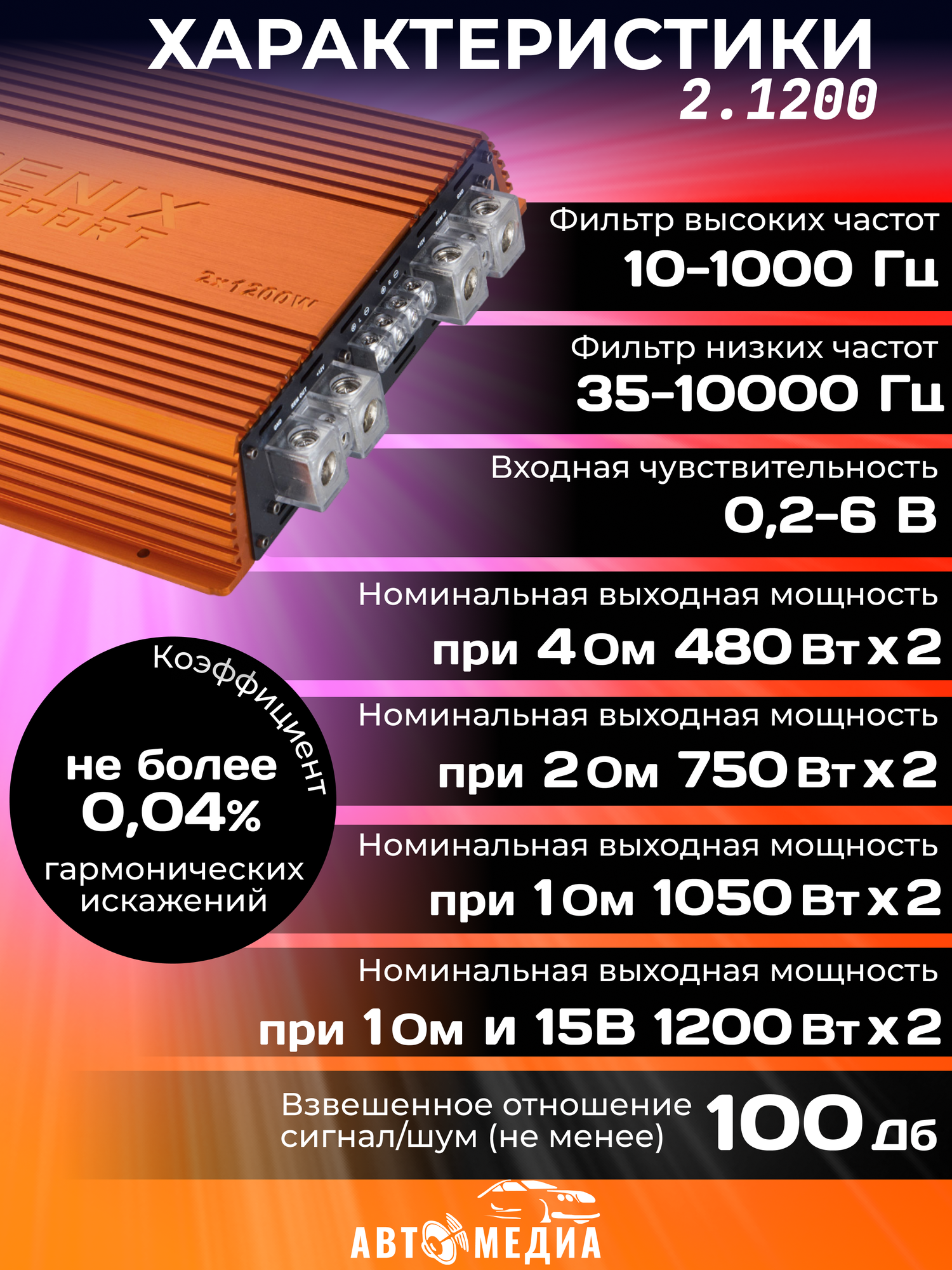 Усилитель автомобильный Phoenix Sport 2.1200 интересное: