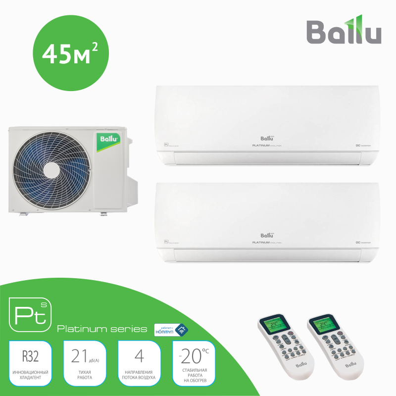 мульти сплит система инвертор на 2 комнаты Ballu BA2OI-FM/out-14HN8/EU + BSUI-FM/in-07HN8/EU + BSUI-FM/in-09HN8/EU