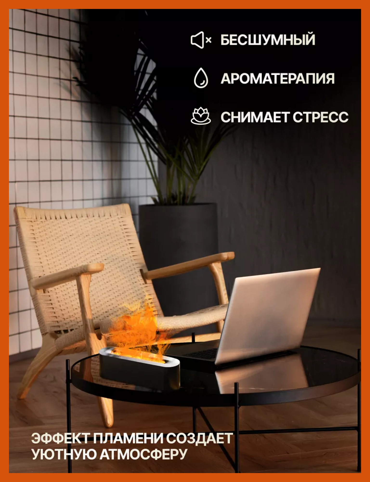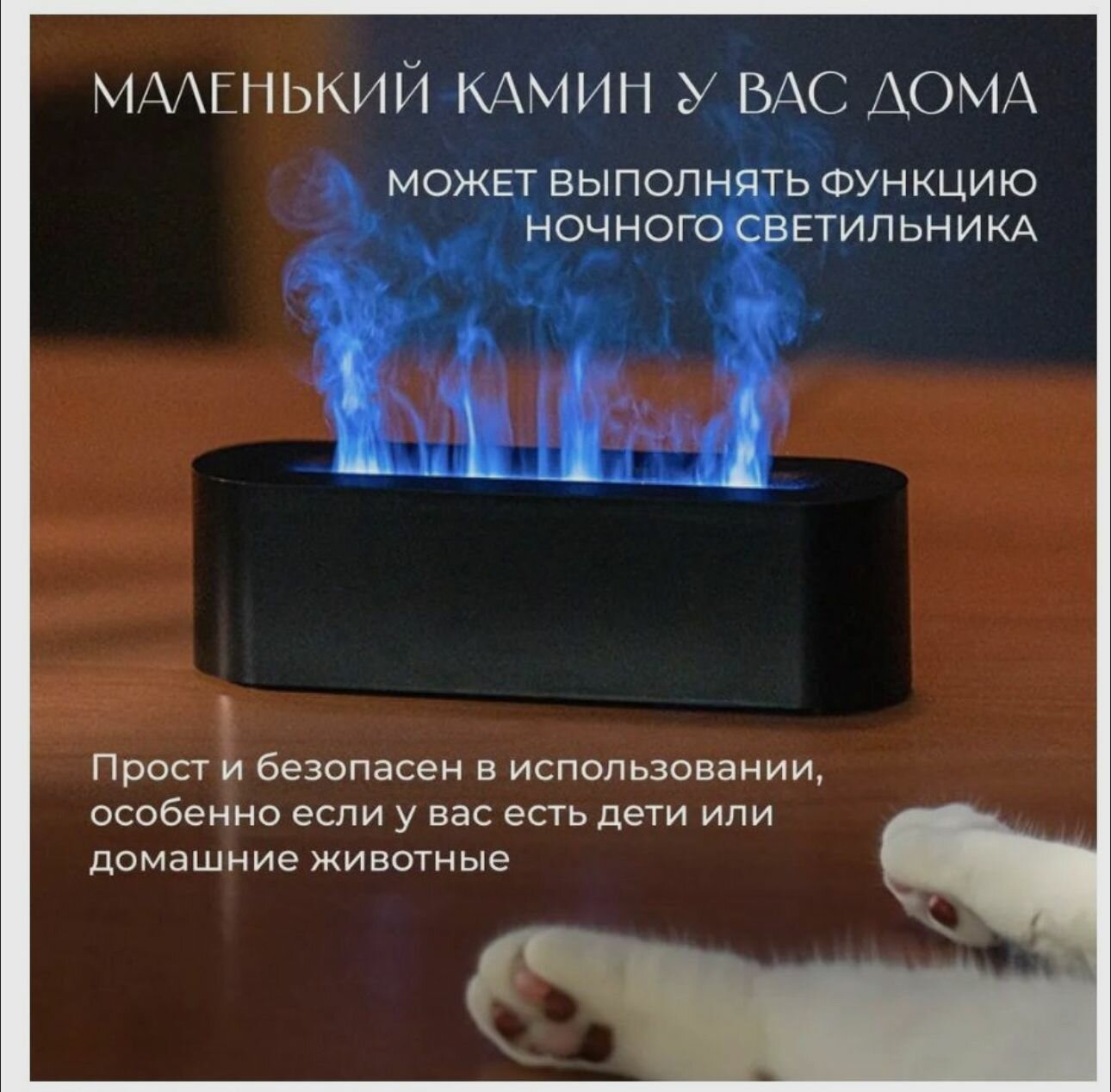 Увлажнитель воздуха с многоцветной подсветкой "Пламя", 5 Вт, 200мл/ч, 10 кв м, черный интересное: