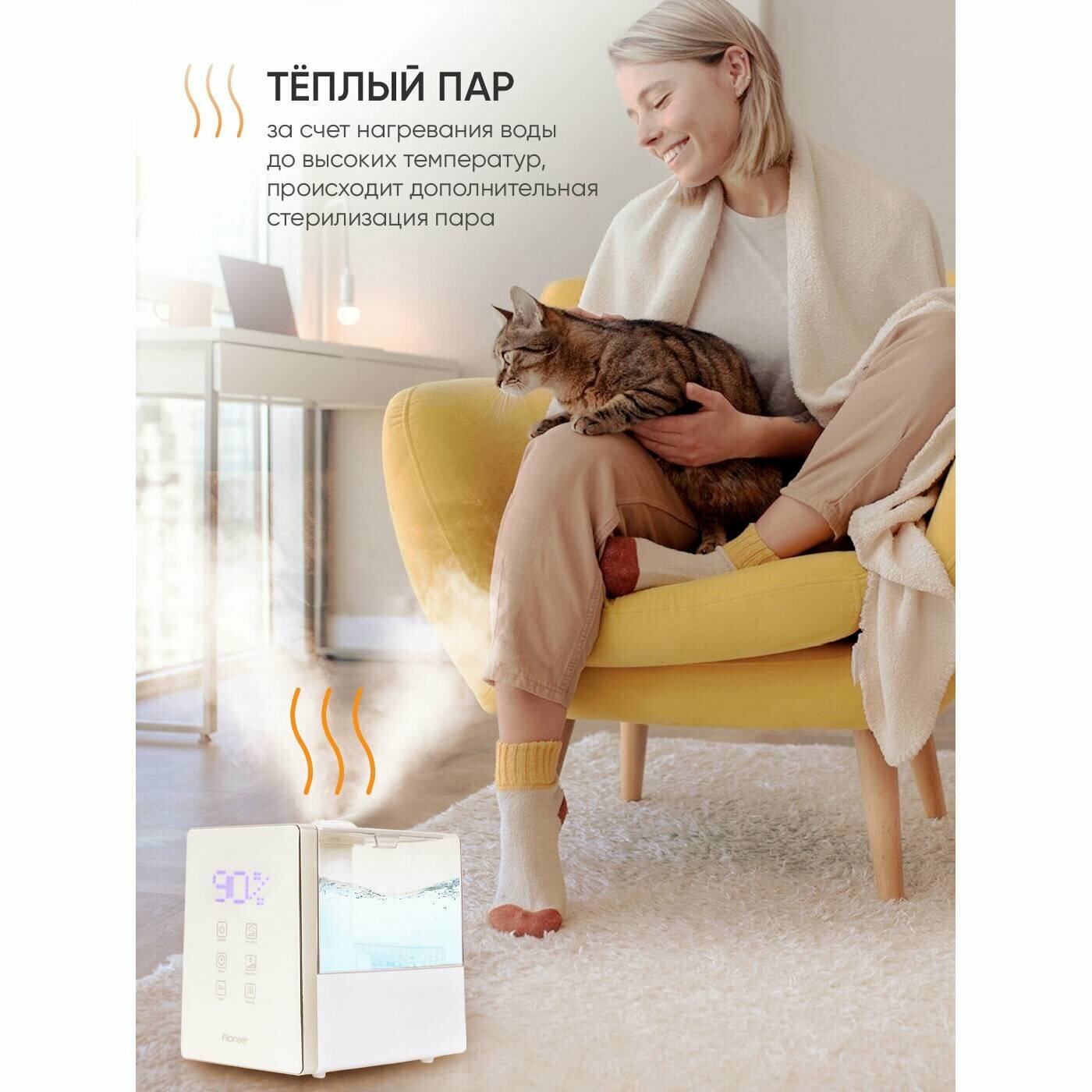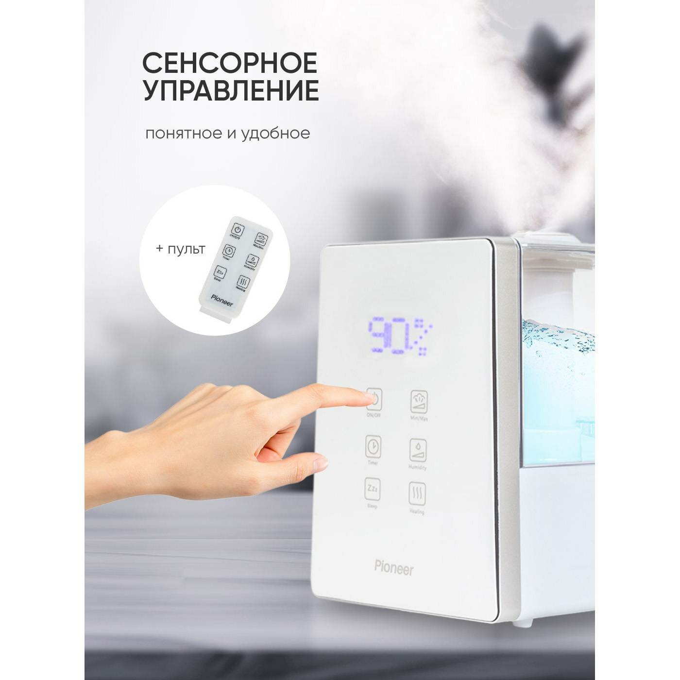 Ультразвуковой увлажнитель воздуха Pioneer HDS12 6 л, c сенсорной панелью и аромакапсулой, верхний долив, функция теплый ПАР