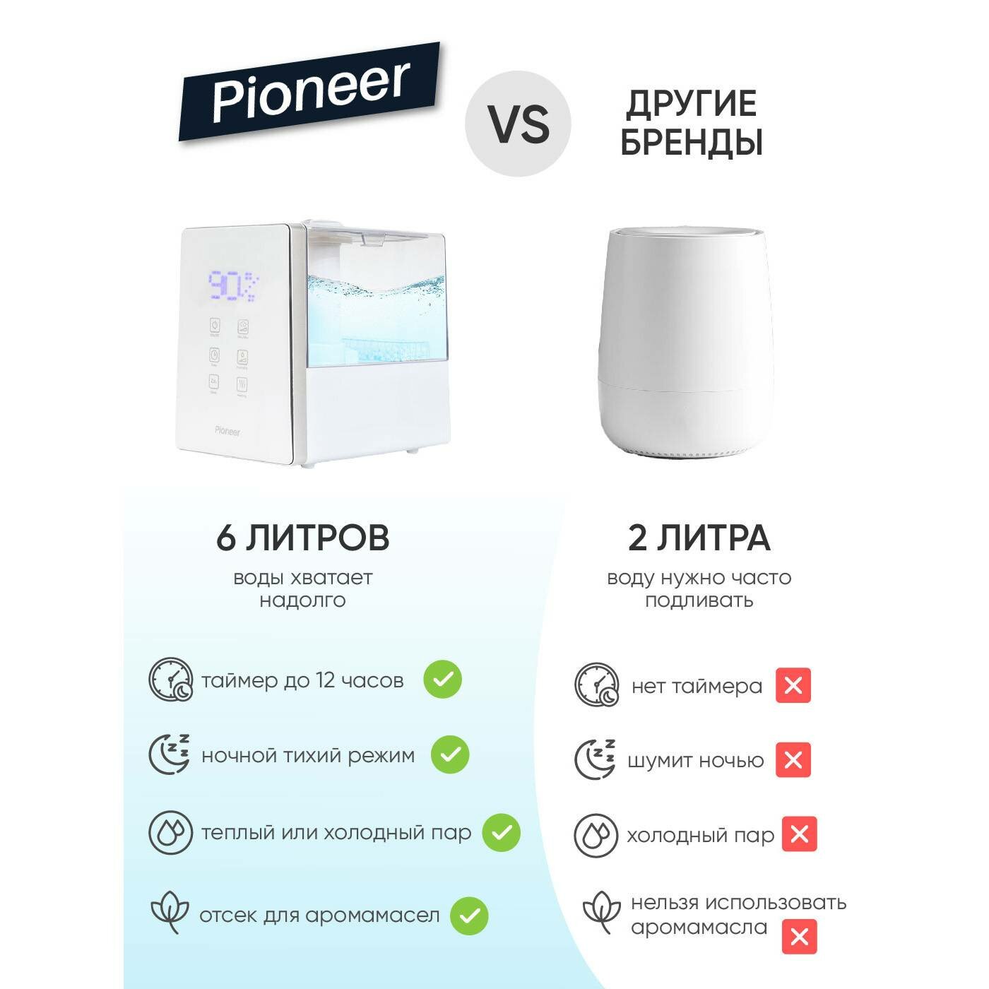 Ультразвуковой увлажнитель воздуха Pioneer Platinum 6 л, c сенсорной панелью и аромакапсулой
