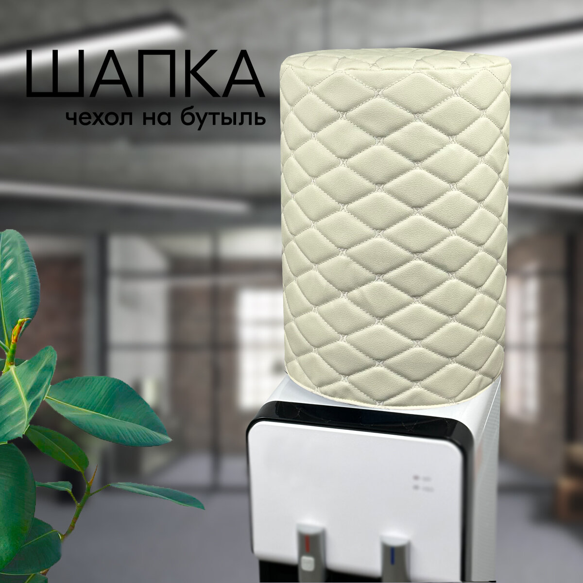 Чехол на бутыль 19л шапка Белый Экокожа интересное: