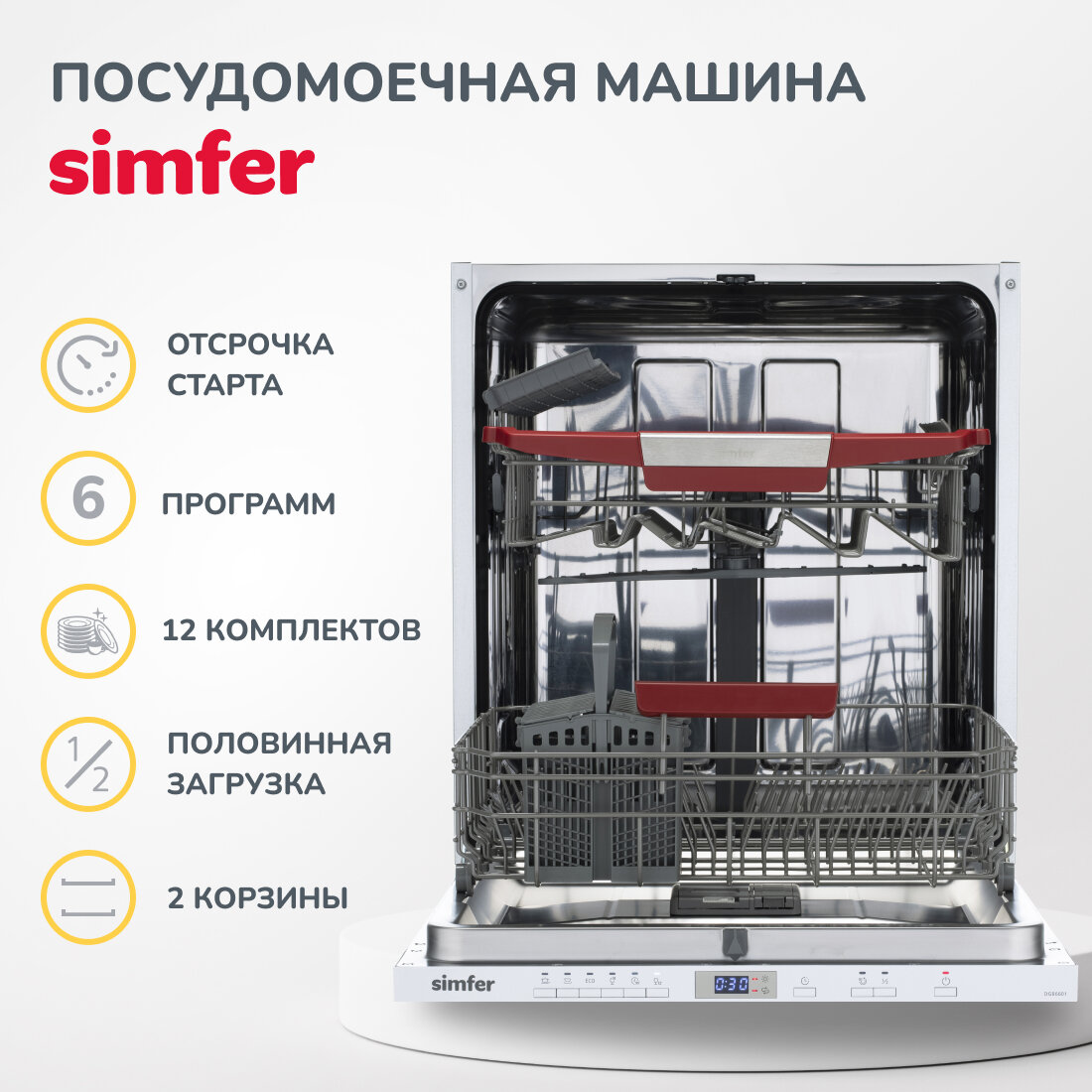Встраиваемая посудомоечная машина Simfer DGB6601 (вместимость 12 комплектов, энергоэффективность А++)