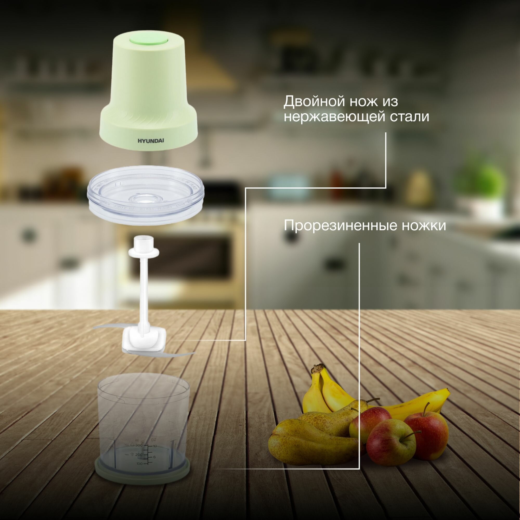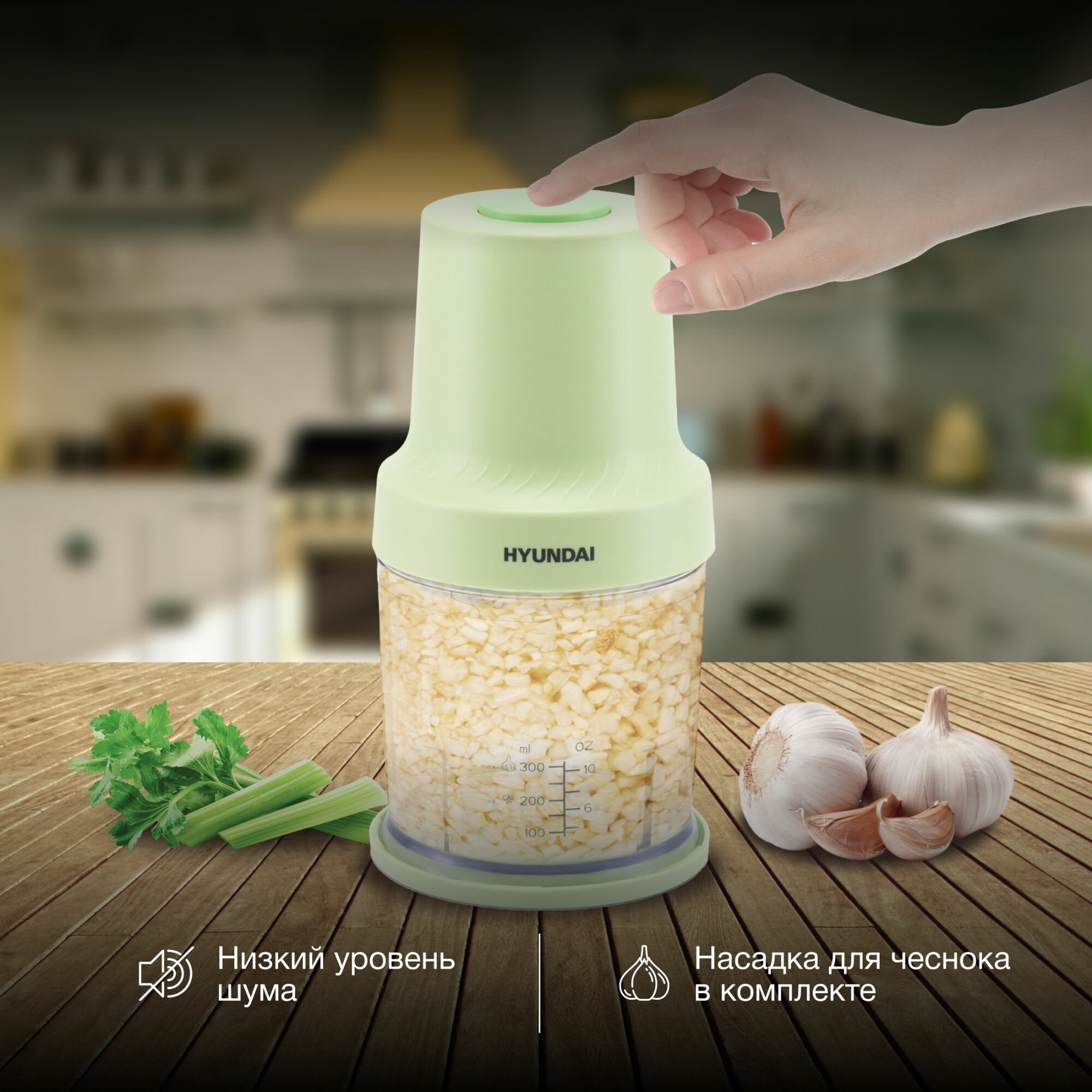 Измельчитель электрический Hyundai HYC-P3128, 0.8 л, салатовый/белый