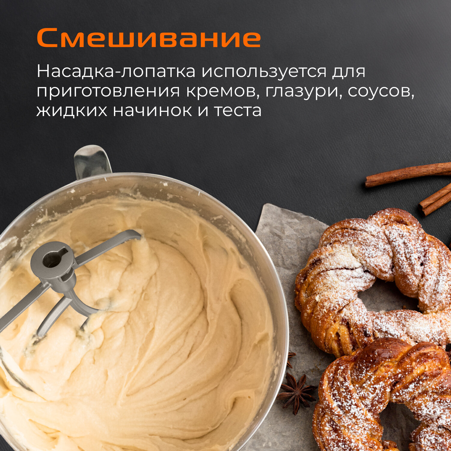 | Насадки | венчик для взбивания / крючки для замешивания теста / лопатка |
