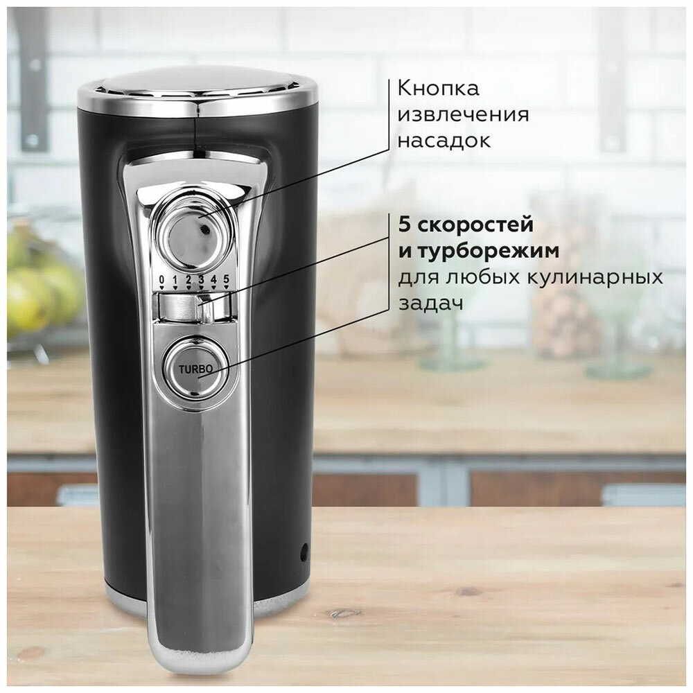 | Насадки | венчик для взбивания / крючки для замешивания теста |