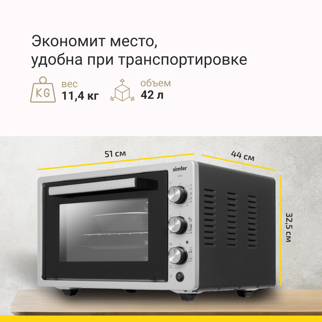 Мини-печь Simfer M4275 (6 режимов, конвекция, двойное стекло, цвет белый)