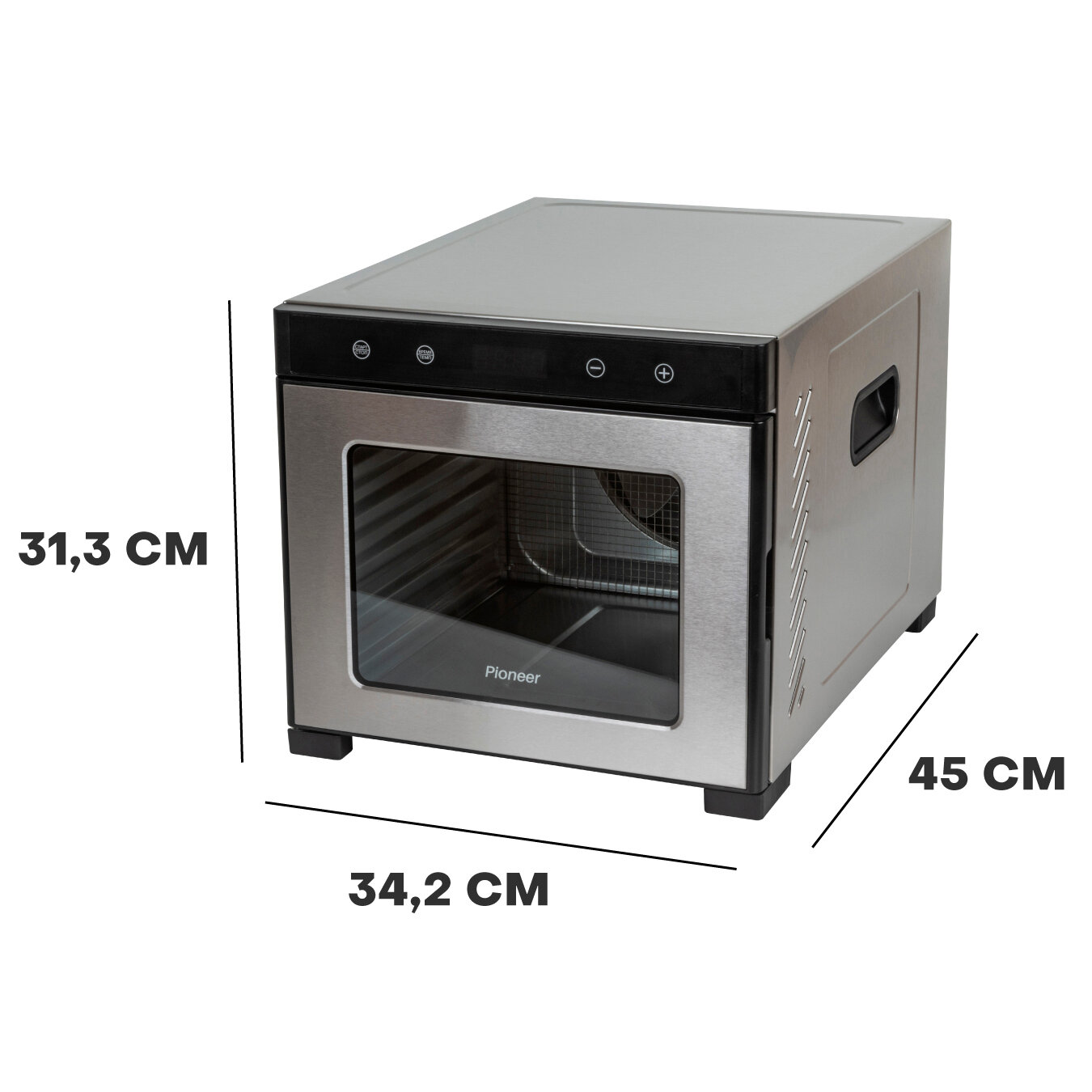 Сушилка для овощей Pioneer FD106 с регулировкой температуры и таймером, 6 поддонов+6 поддонов для пастилы и сетка для трав, 650 Вт