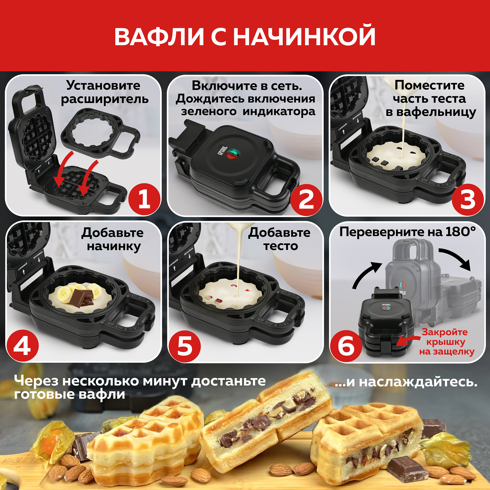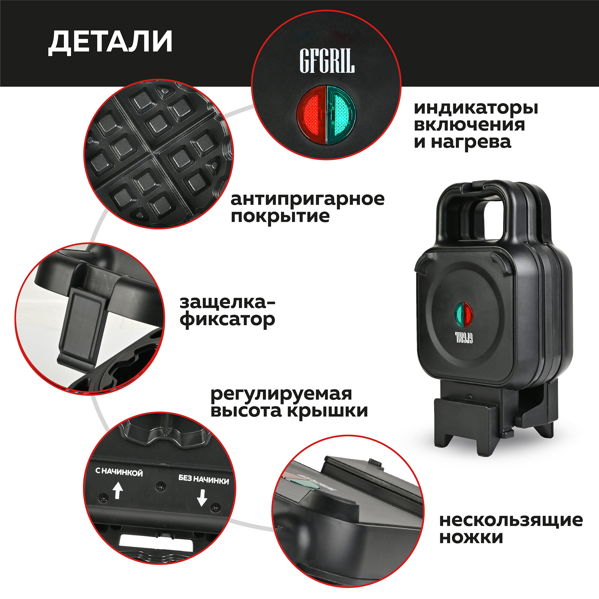 GFGRIL Электрическая вафельница 2 в 1 GFW-045, классические вафли и вафли с начинкой, бельгийские и венские вафли, антипригарное покрытие интересное: