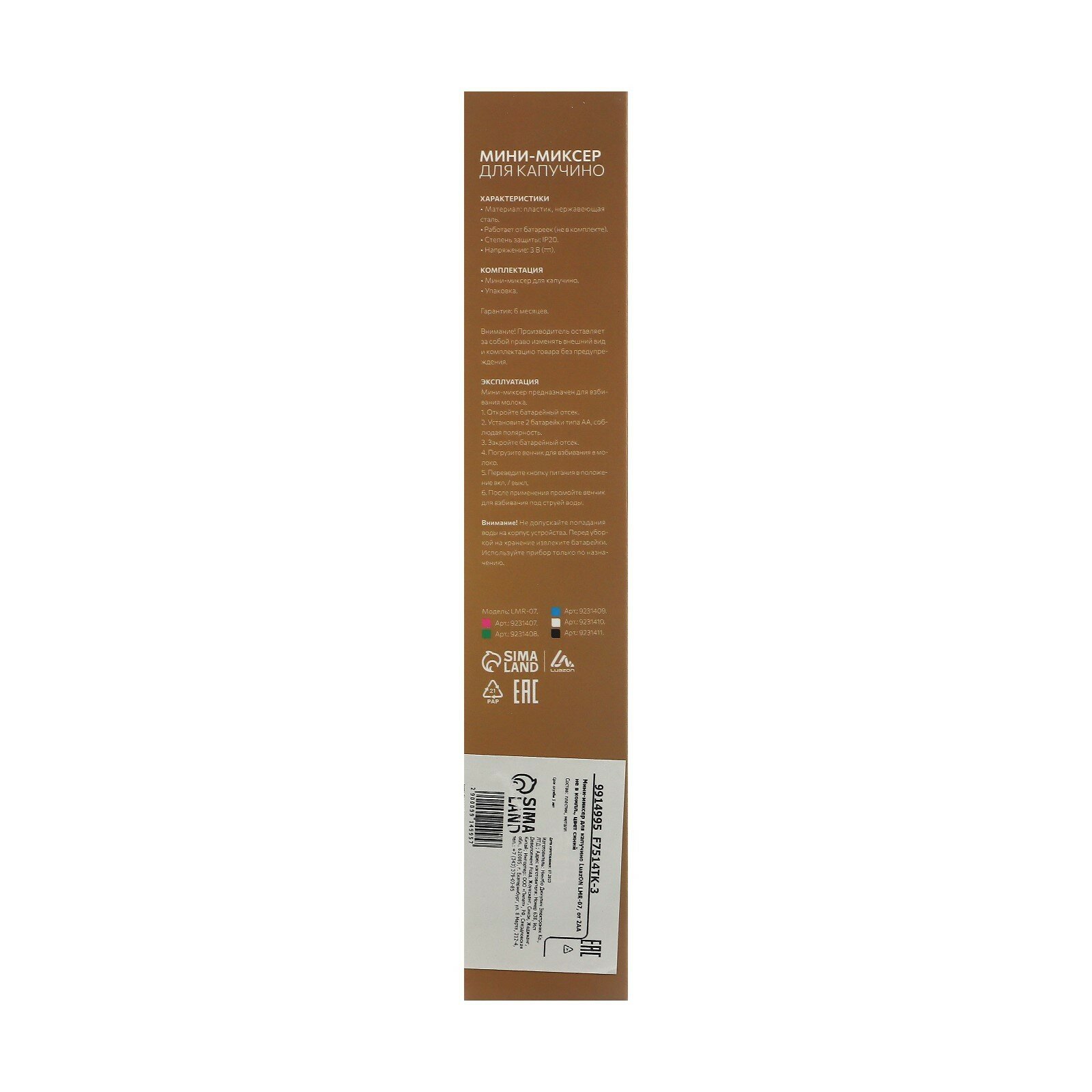 Купить Капучинатор погружной Luazon LMR-07, от 2АА не в компл., цвет зелёный