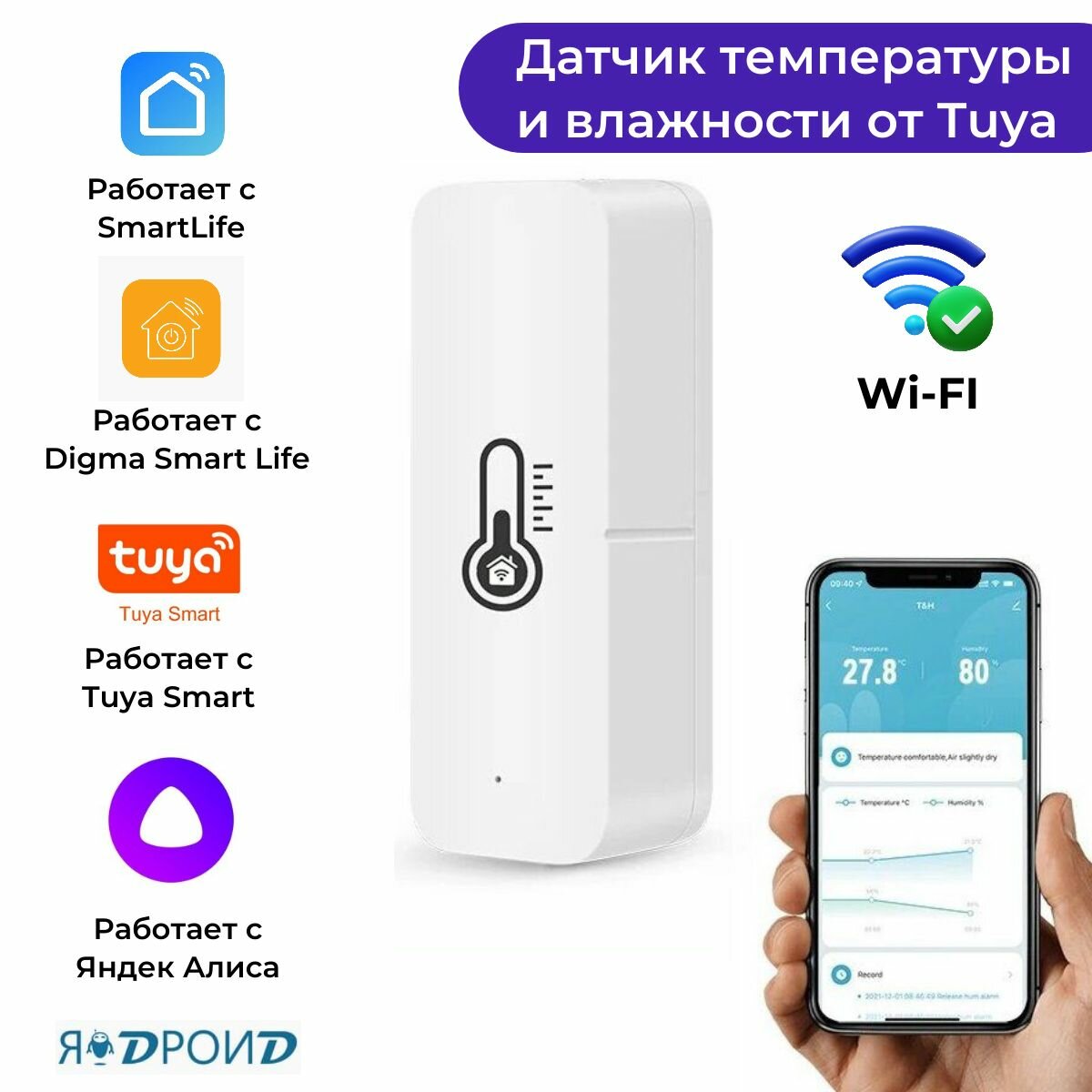 | Подробная комплектация | Датчик температуры и влажности от Tuya, крепежные элементы, руководство пользователя |
