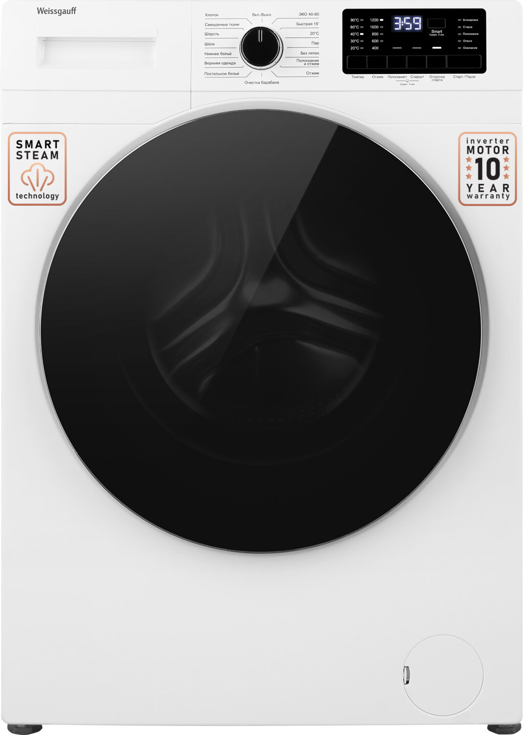 Купить Cтиральная машина с инвертором и паром Weissgauff WM 61212 DC Inverter Steam,3 года гарантии, Режим Умной стирки, Установка в колонну с сушильным барабаном, 1200 оборотов, блокировка от детей, А+++