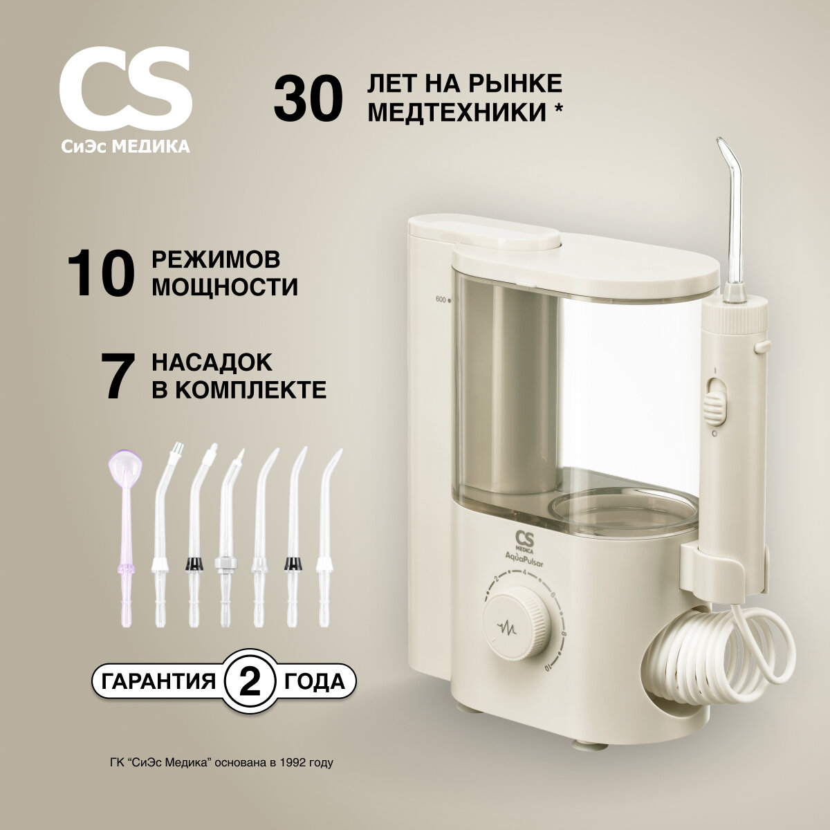 СохранитьИрригатор полости рта CS Medica AquaPulsar CS-4 IMPULSE Greige (серый) интересное: