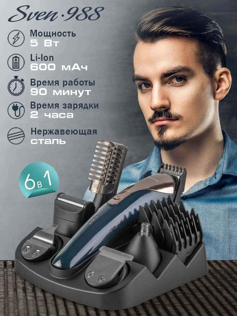 Триммер для головы, лица и тела Endever Sven-988, синий/черный (90359) интересное: