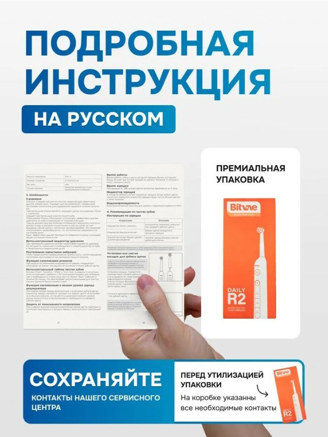 Электрическая зубная щетка Bitvae R2 Rotary E- Toothbrush (R2) ,GLOBAL, White