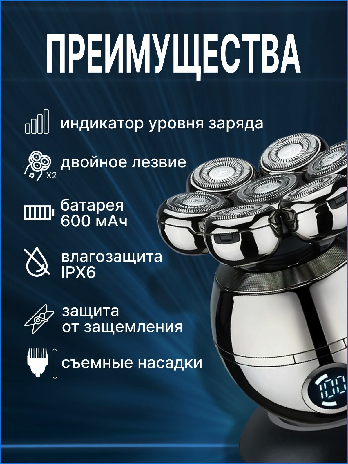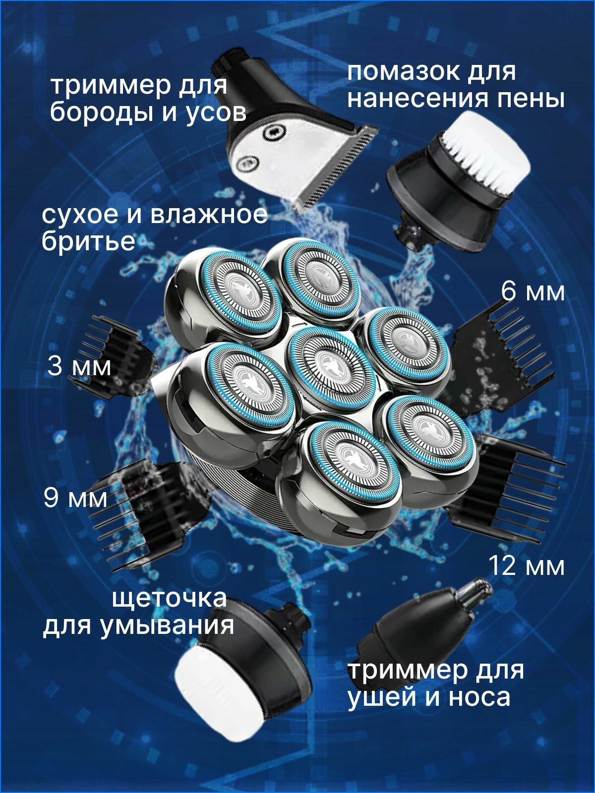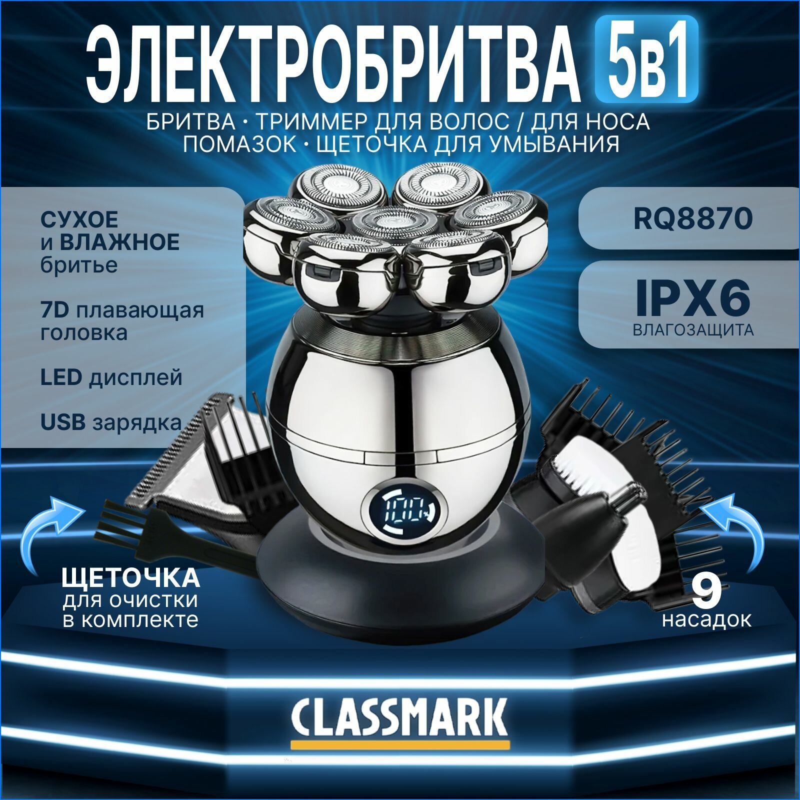 Электробритва мужская Classmark RQ8870 бритва электрическая для мужчин роторная аккумуляторная с насадками и аксессуарами (9 шт), триммер, плавающая головка и LED дисплей, для бороды и усов интересное: