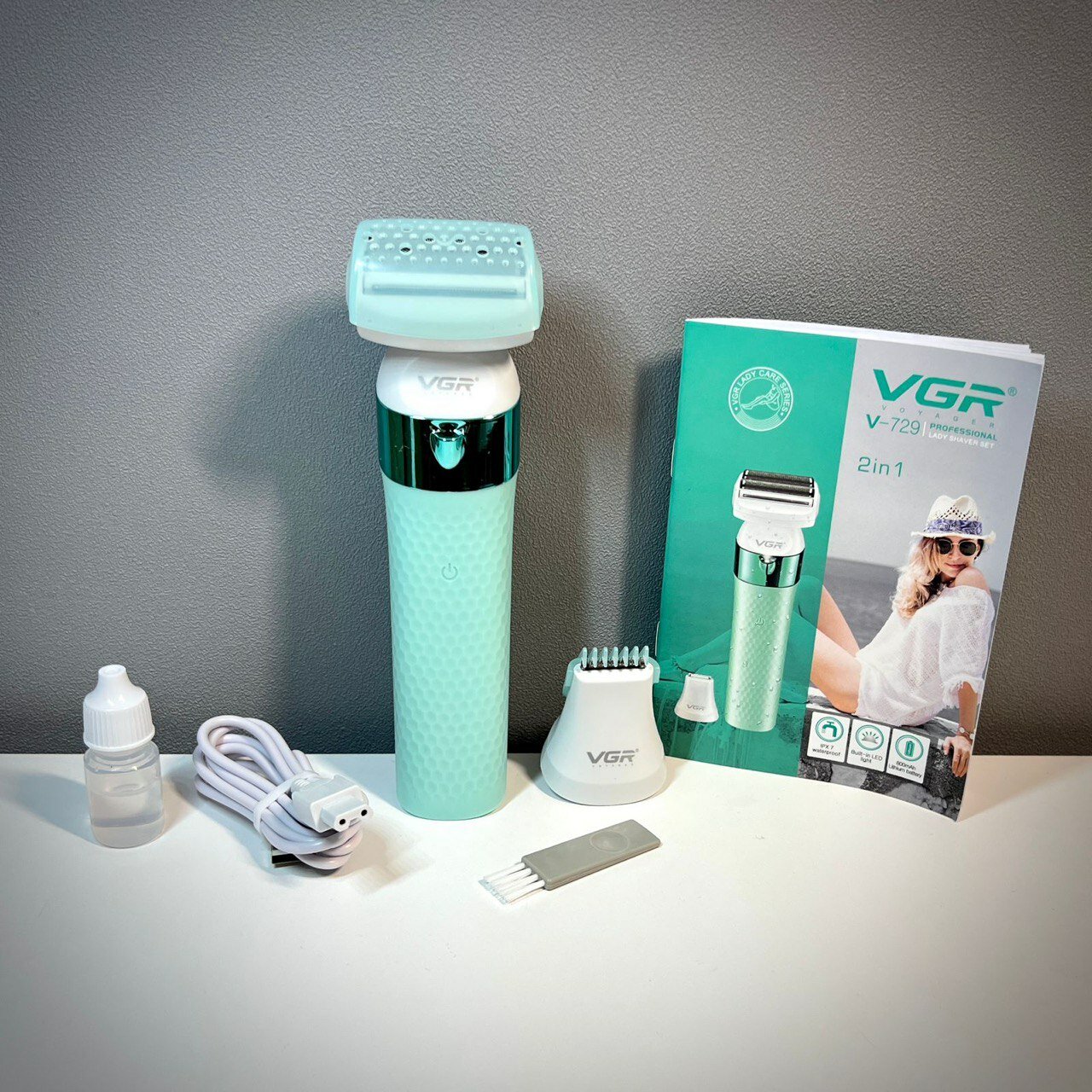 Водостойкая беспроводная женская электробритва VGR 2 в 1 для удаления волос на теле / для рук, ног и зоны бикини / бирюза интересное: