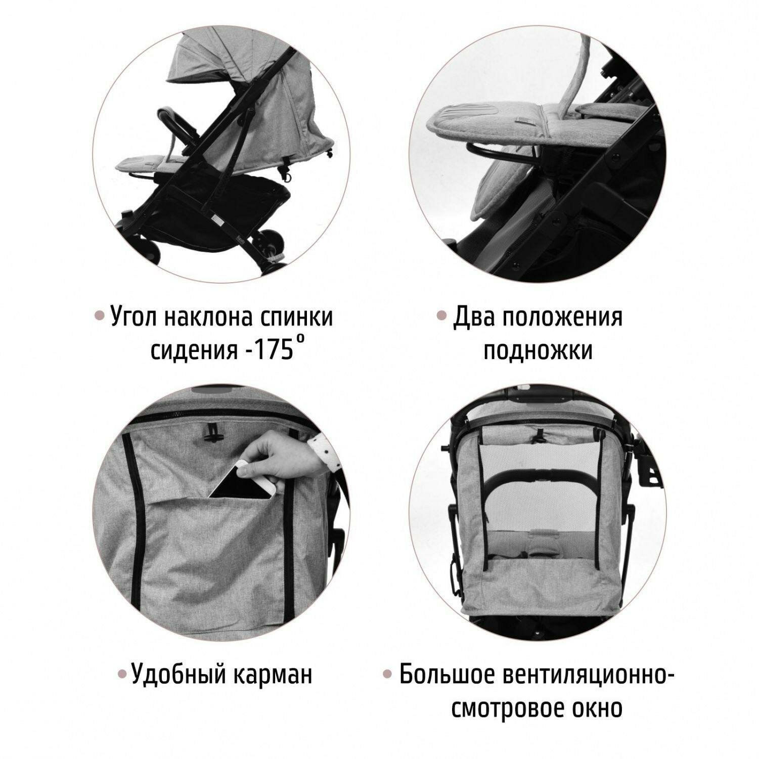 | Аксессуары в комплекте | антимоскитная сетка, дождевик, капюшон, накидка на ноги, подстаканник, сумка для хранения и переноски |