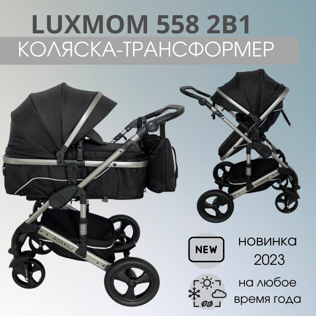 Детская коляска-трансформер 2 в 1 Luxmom 558, черный с чехлами на колеса