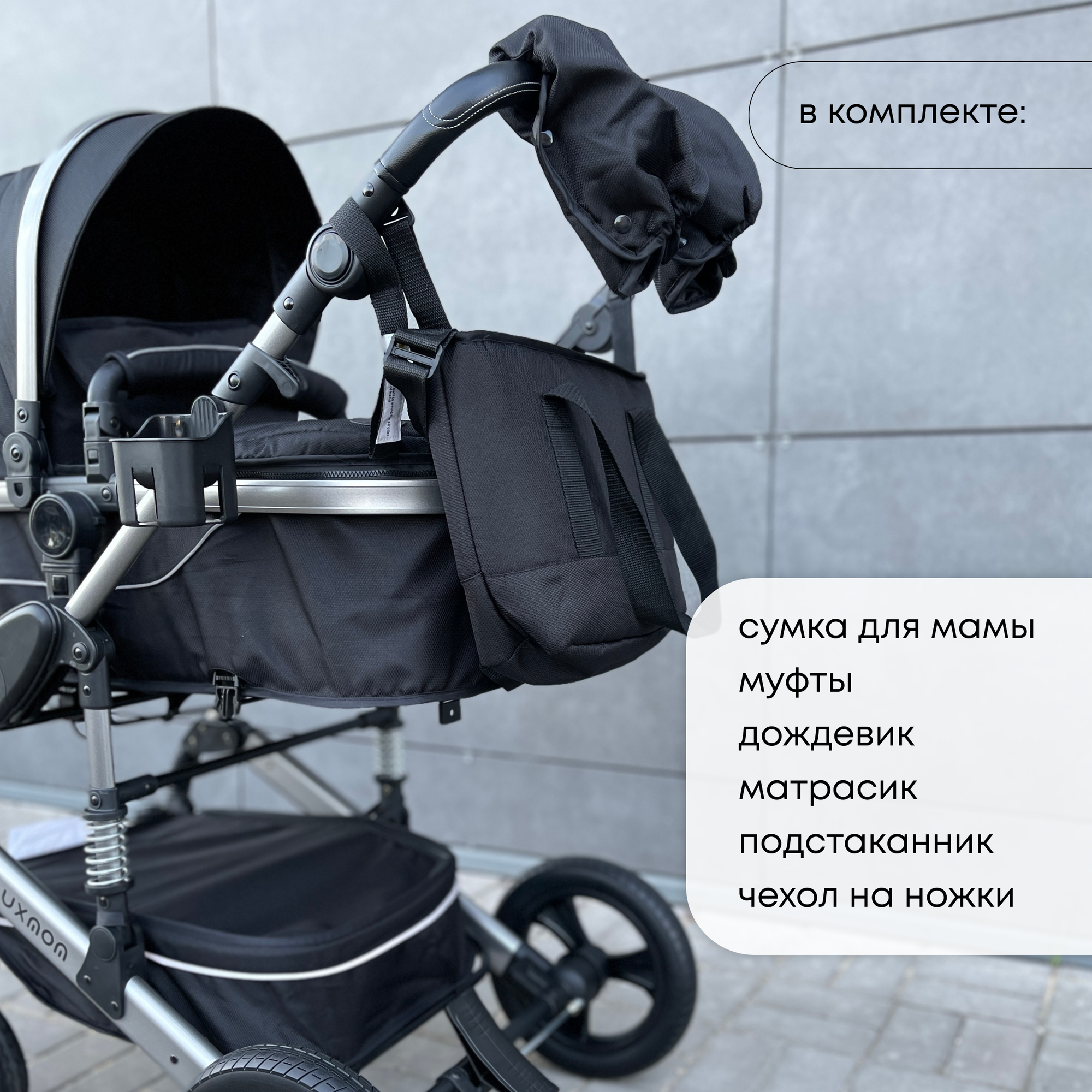 | Комплектация | москитная сетка / дождевик / подстаканник / сумка / Муфты для рук / матрас / утеплитель |