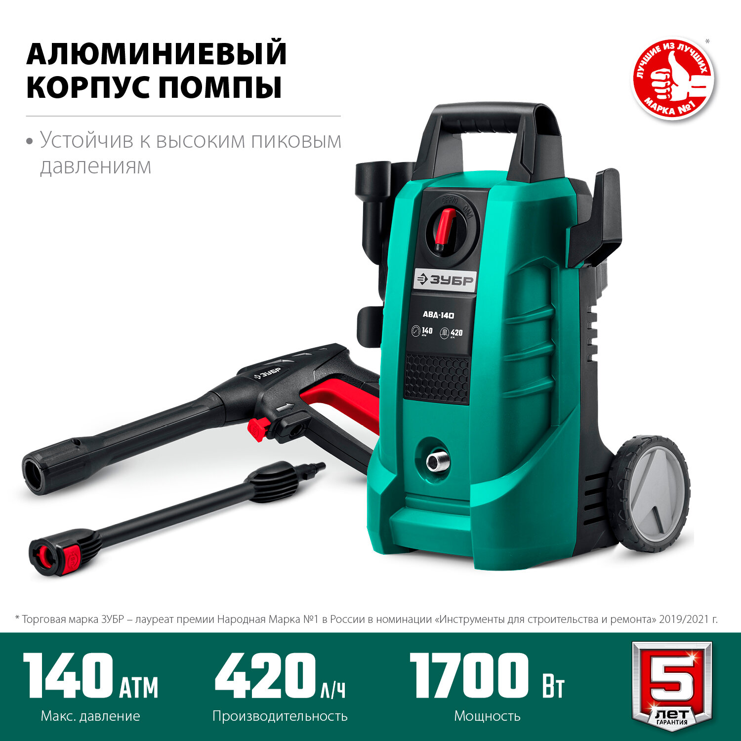 ЗУБР 1700 Вт, 140 Атм, мойка высокого давления АВД-140 Мастер