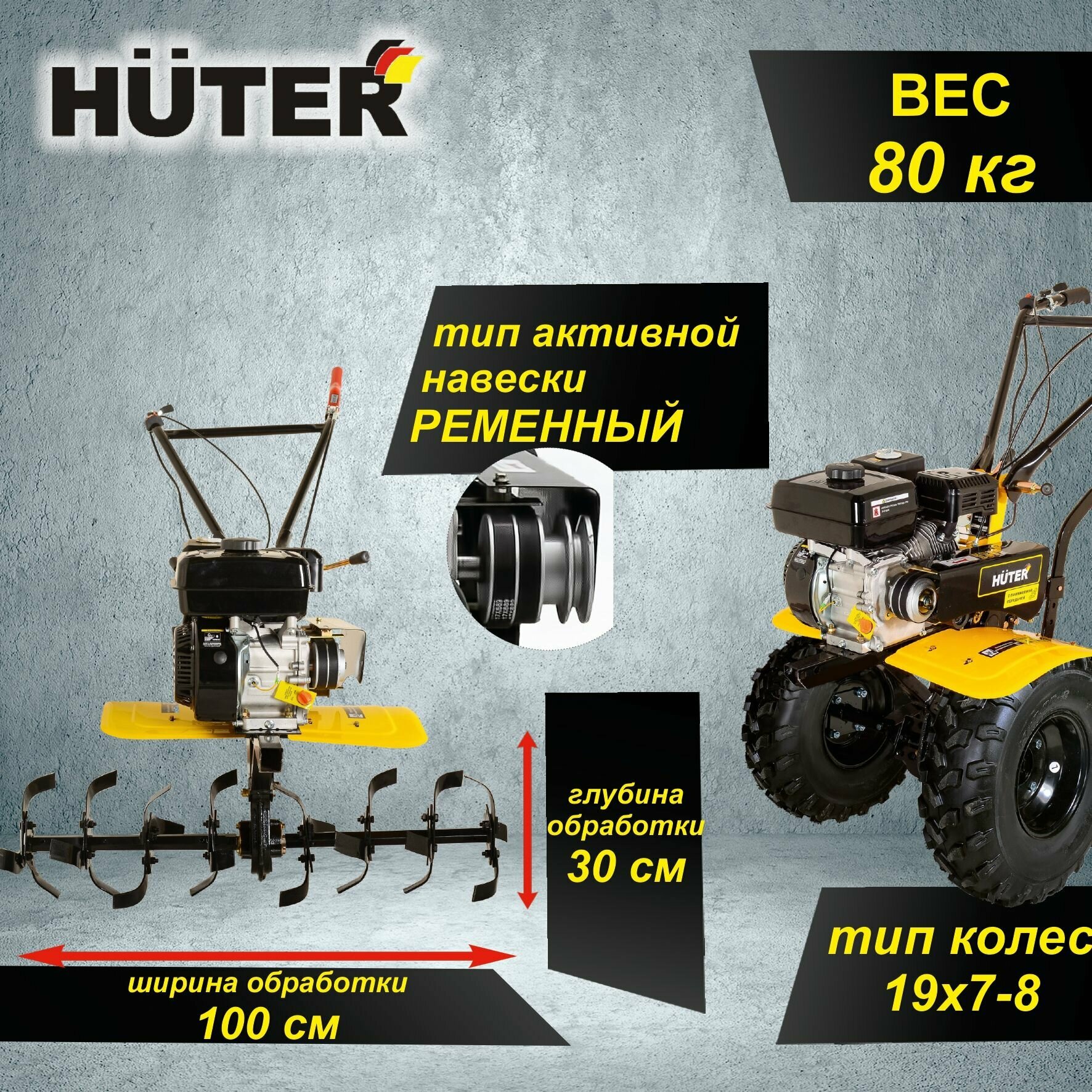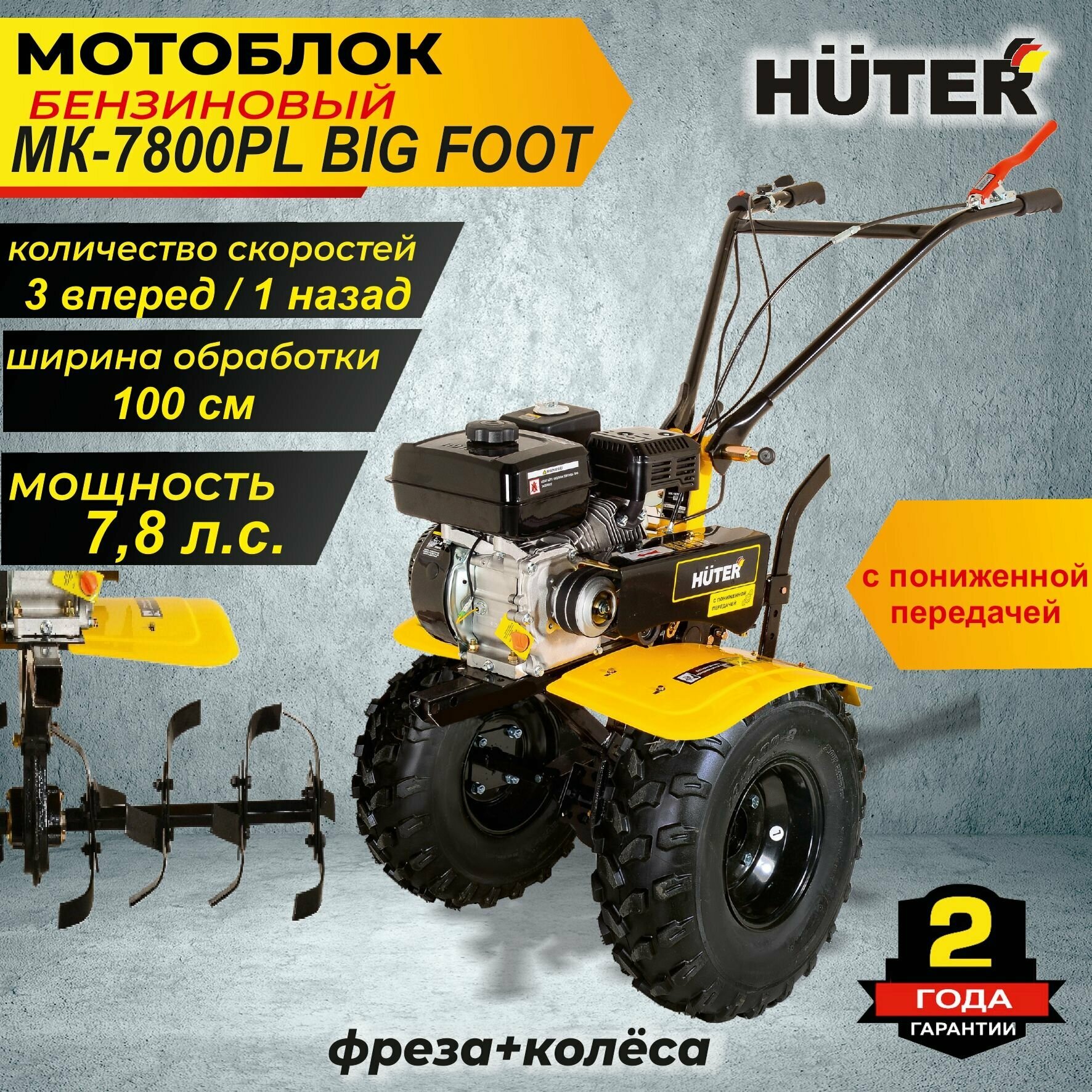 Мотоблок Huter МК-7800PL BIG FOOT, бензиновый