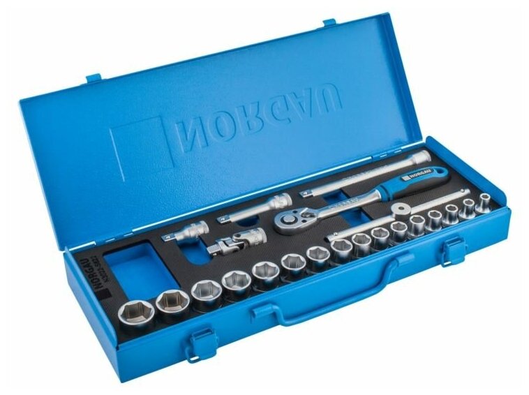 Набор головок торцевых 3/8" NORGAU Industrial шестигранных c трещоткой и аксессуарами, 22 предмета в чемодане