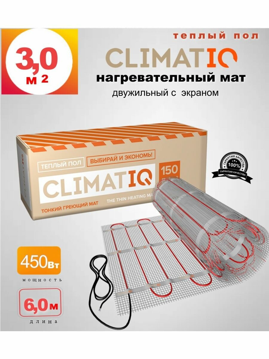 Нагревательный мат, CLIMATIQ, MAT 450Вт, 3 м2, 600х50 см