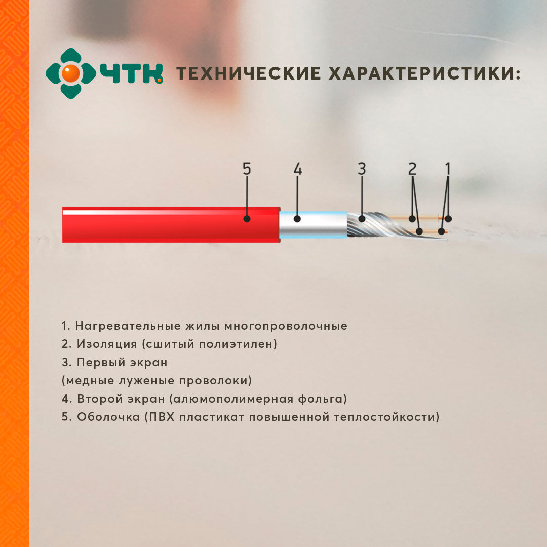 | Дополнительная информация | Внимание! Маты и кабель ТОЛЬКО продукции ЧТК; можно использовать вертикально! ( например, вместо полотенцесушителя) ; т.к. изоляция у кабеля ЧТК из сшитого полиэтилена которая имеет низкую хладотекучесть; в отличии от фторопластовой изоляции; которая со временем может привести к «стеканию» изоляции! |
