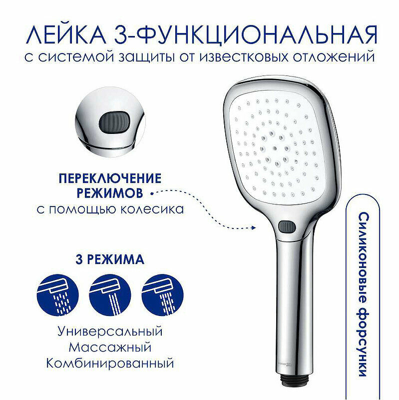 | Особенности | антиизвестковое покрытие / аэратор / поворотный излив / регулируемый верхний душ |